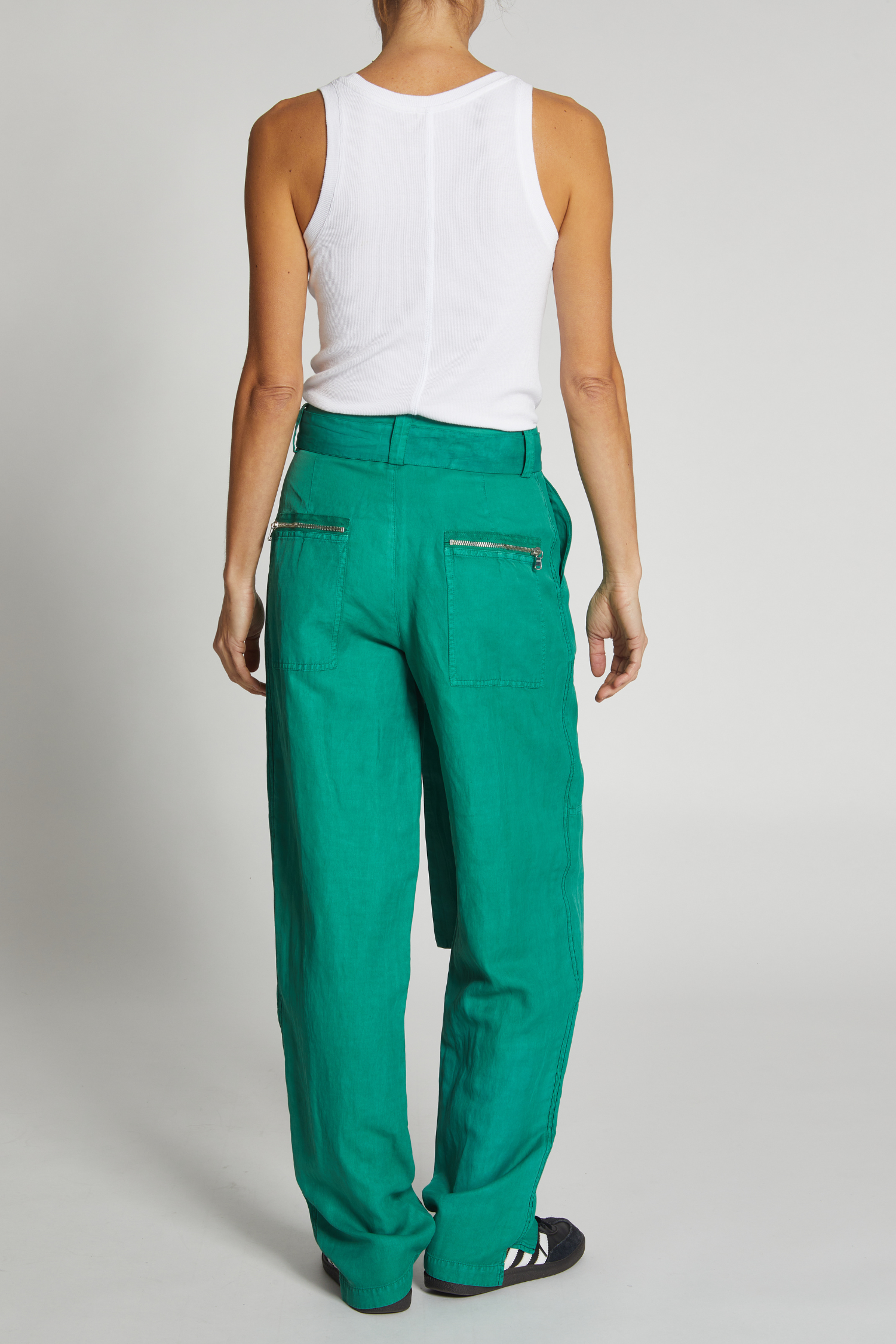 Expertly crafted for effortless style and comfort, the Courtney Mid-rise Pant in Pepper Green is a must-have for any wardrobe. With a utility-inspired design and removable d-ring tie, this cargo pant is perfect for everyday wear. Made with garment washed cotton tencel, it offers a super soft feel and versatile style.