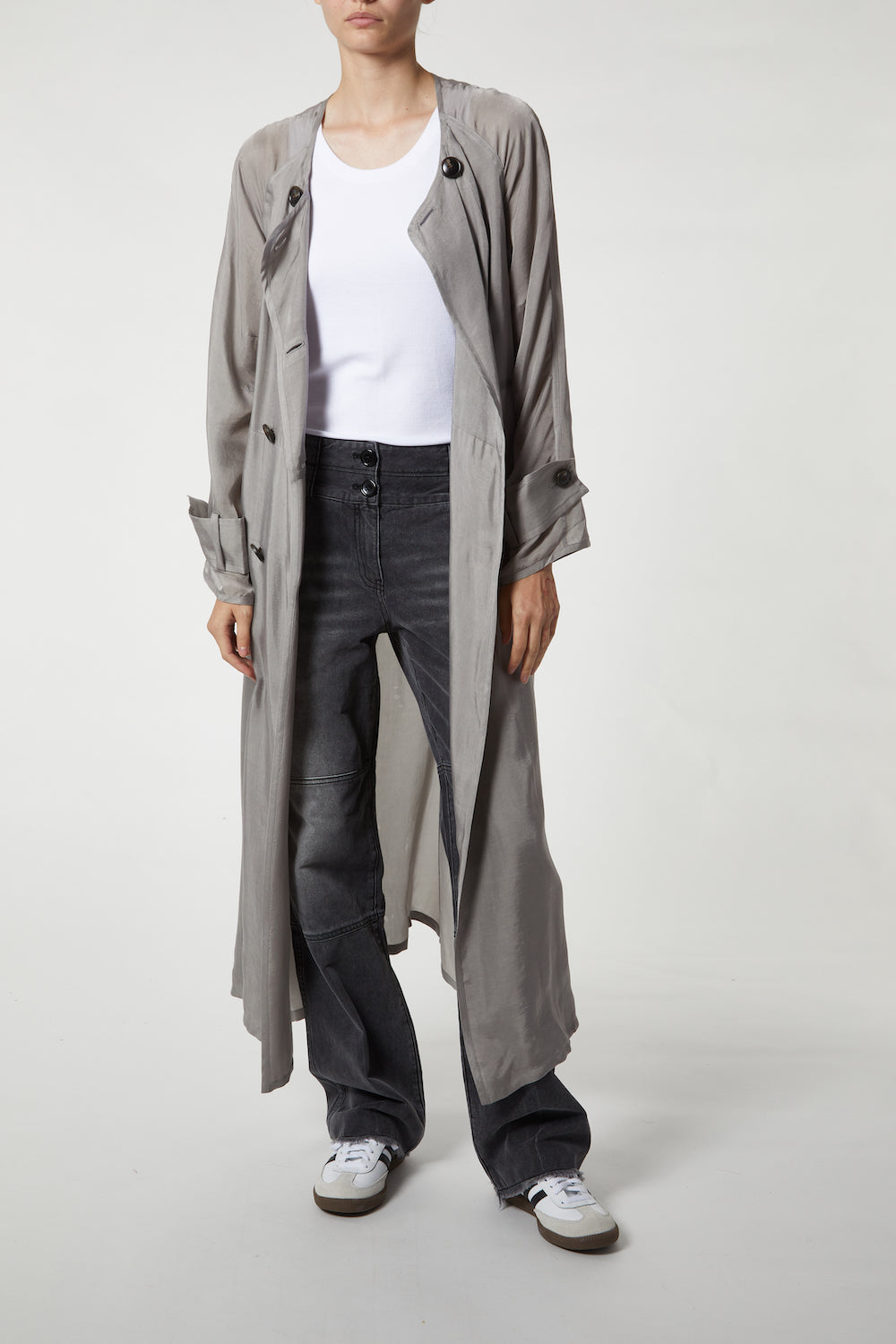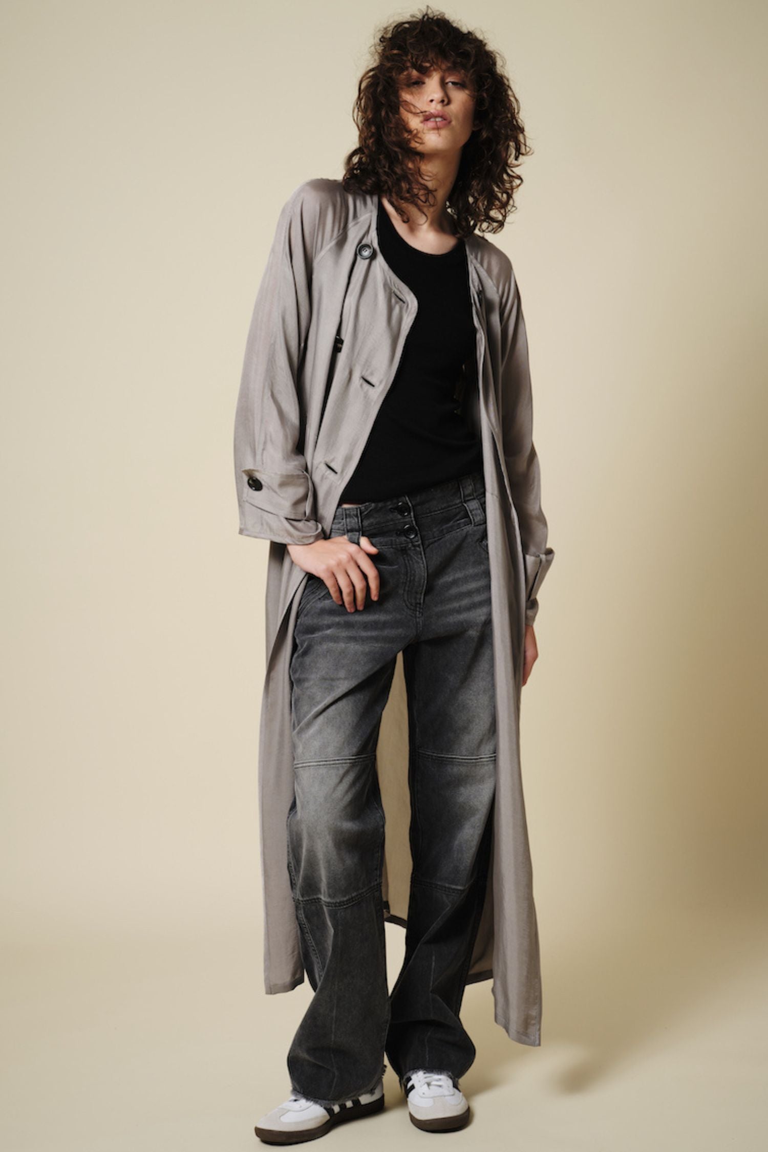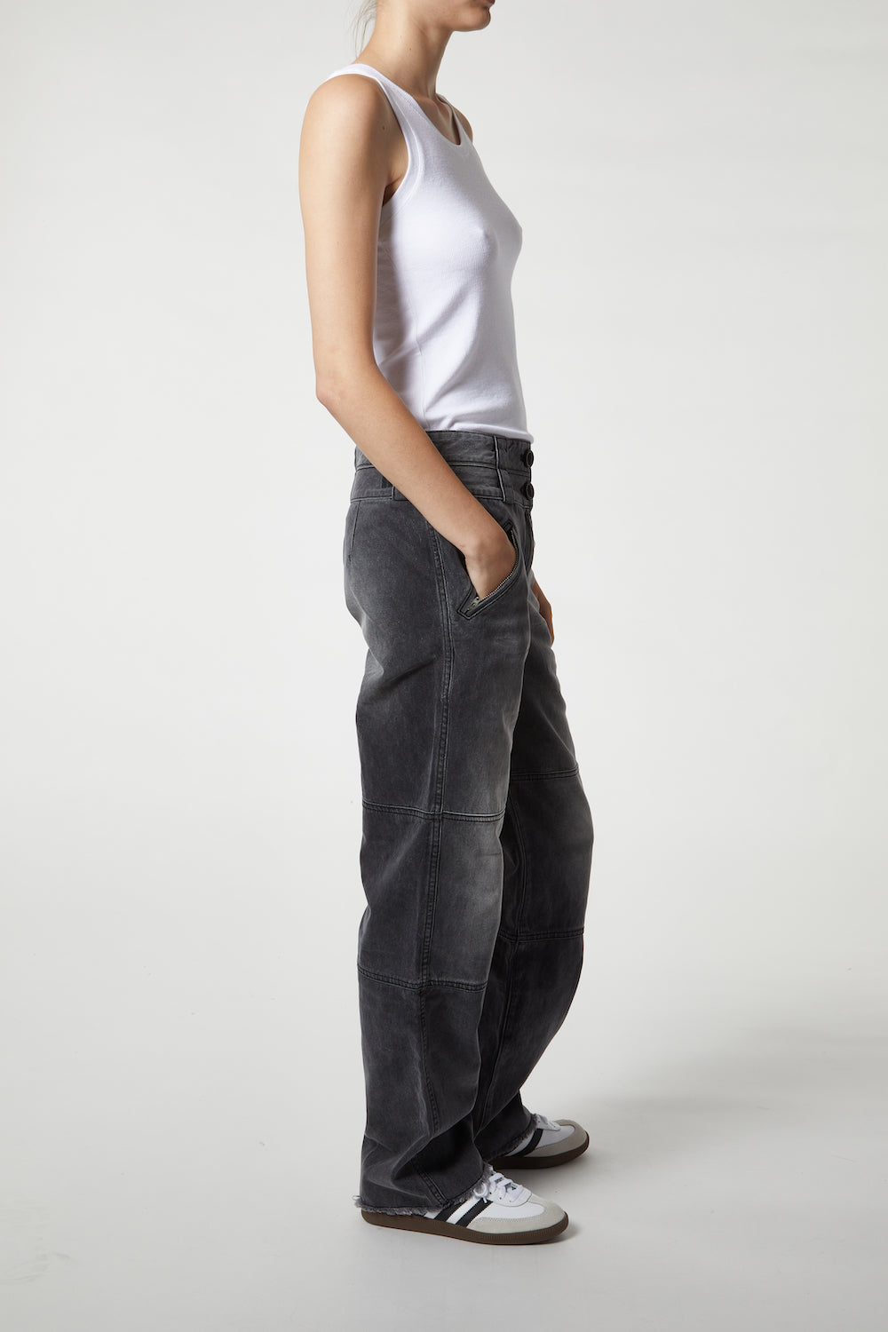 Introducing the Lauren Pant in Graphite Wash Denim – a contemporary twist on classic style that effortlessly blends comfort and fashion. Elevate your wardrobe with these stylish denim pants featuring a unique double waistband that adds a touch of modern flair. The zip-front closure ensures a sleek and polished look, while the faded black wash adds a hint of edgy sophistication. Crafted from high-quality cotton- tencel, these pants offer both durability and flexibility, making them perfect for versatile styling. Whether you're dressing up for a night out or opting for a casual vibe, the Lauren Pant in Graphite Wash Denim is your go-to choice.