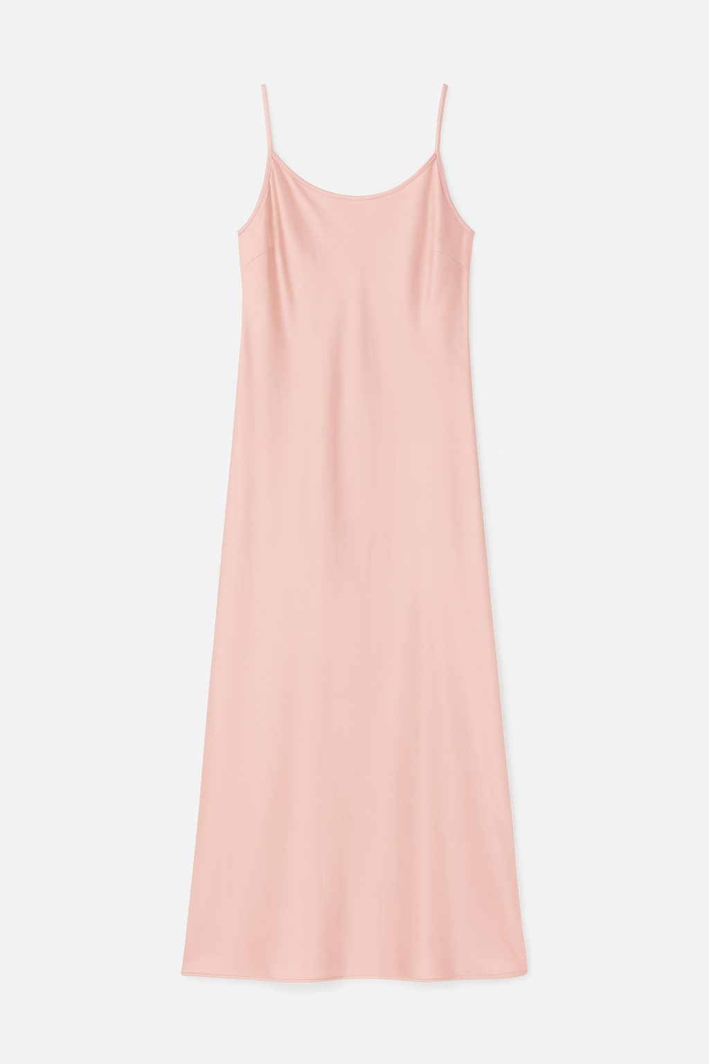 Transform your wardrobe with our versatile Haley Dress in light pink. This full-length slip dress features adjustable straps and can easily transition from day to night. Machine washable for convenience, this dress pairs perfectly with our merino wool sweaters for an effortless look.