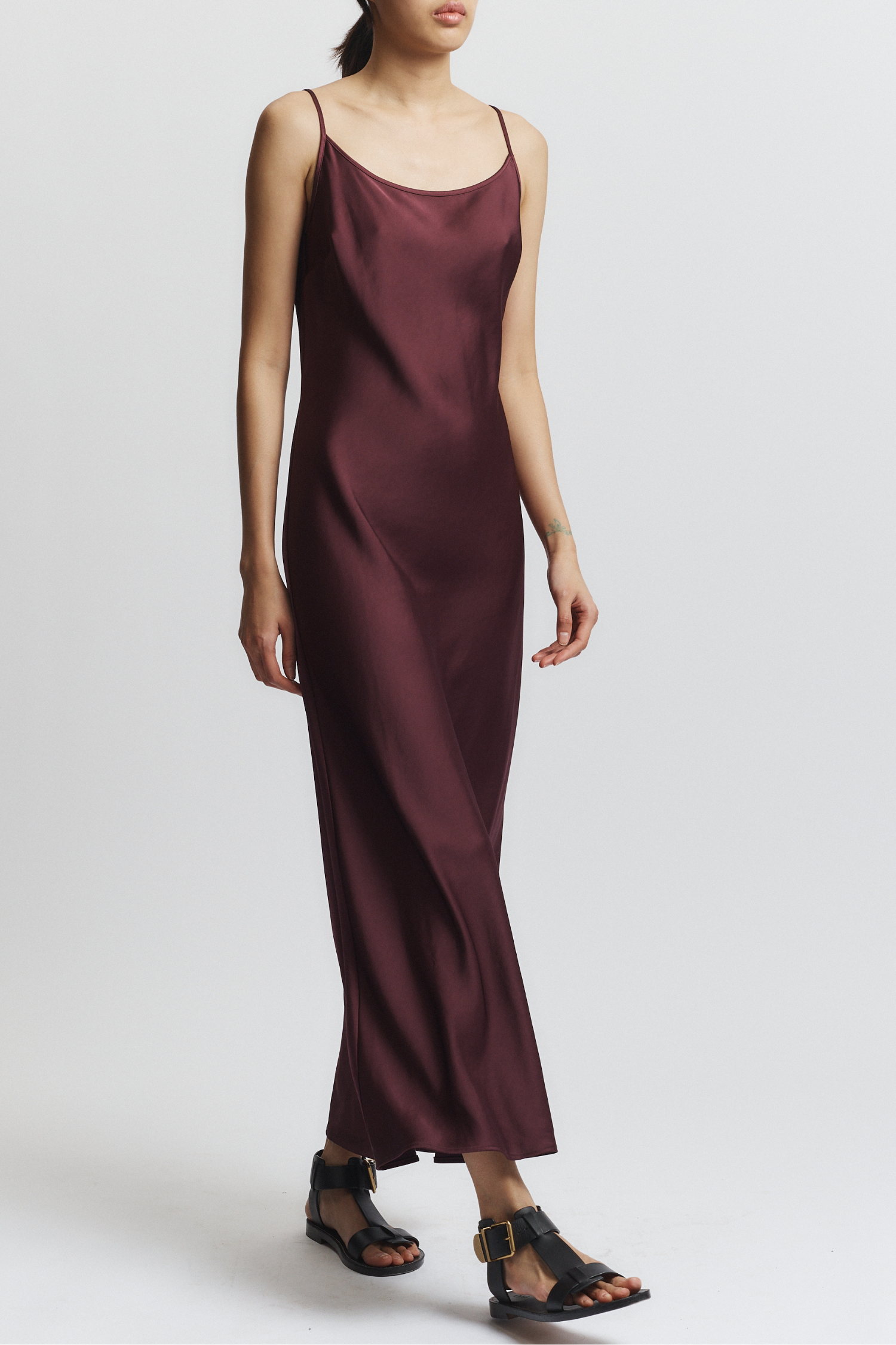 - Scoop neck and back with adjustable thin straps