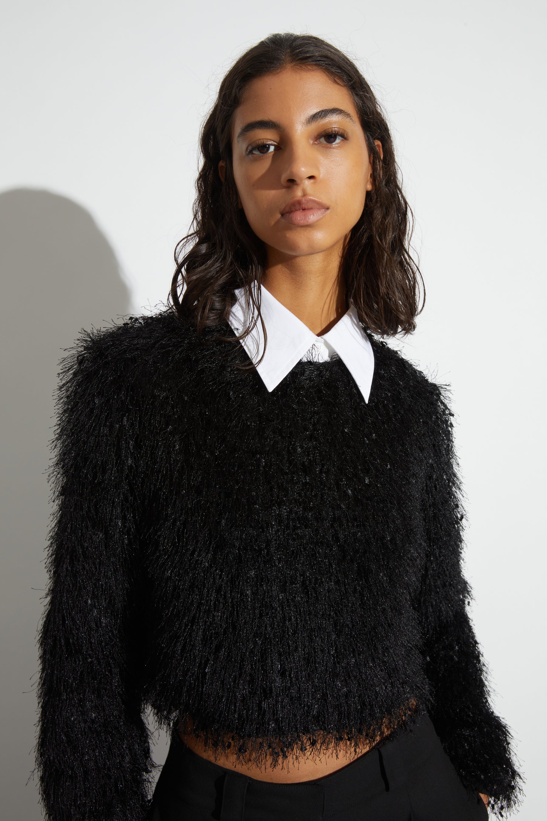 - Fits true to size. Model is wearing a size small. Size up for a more relaxed and boxy look