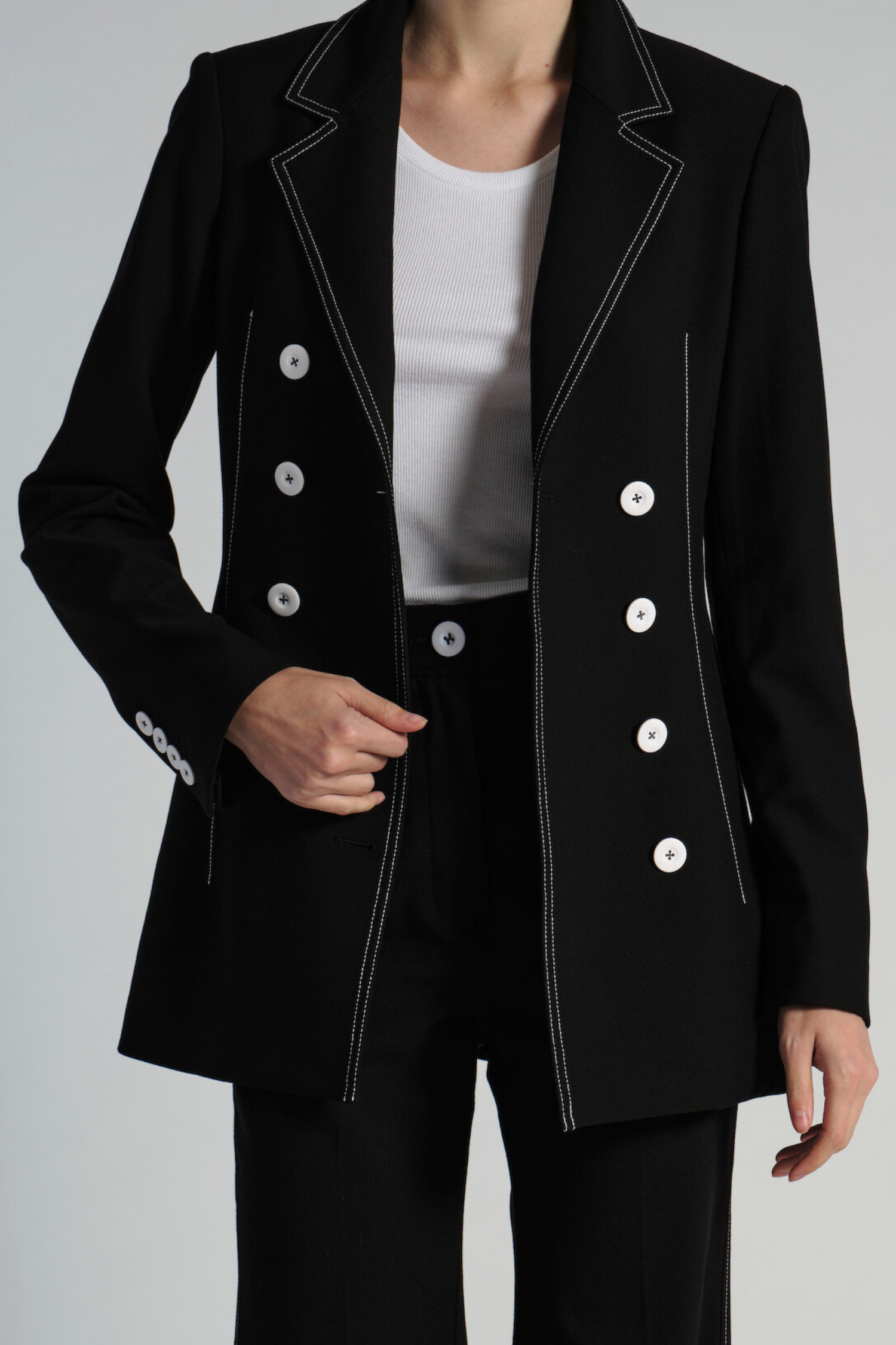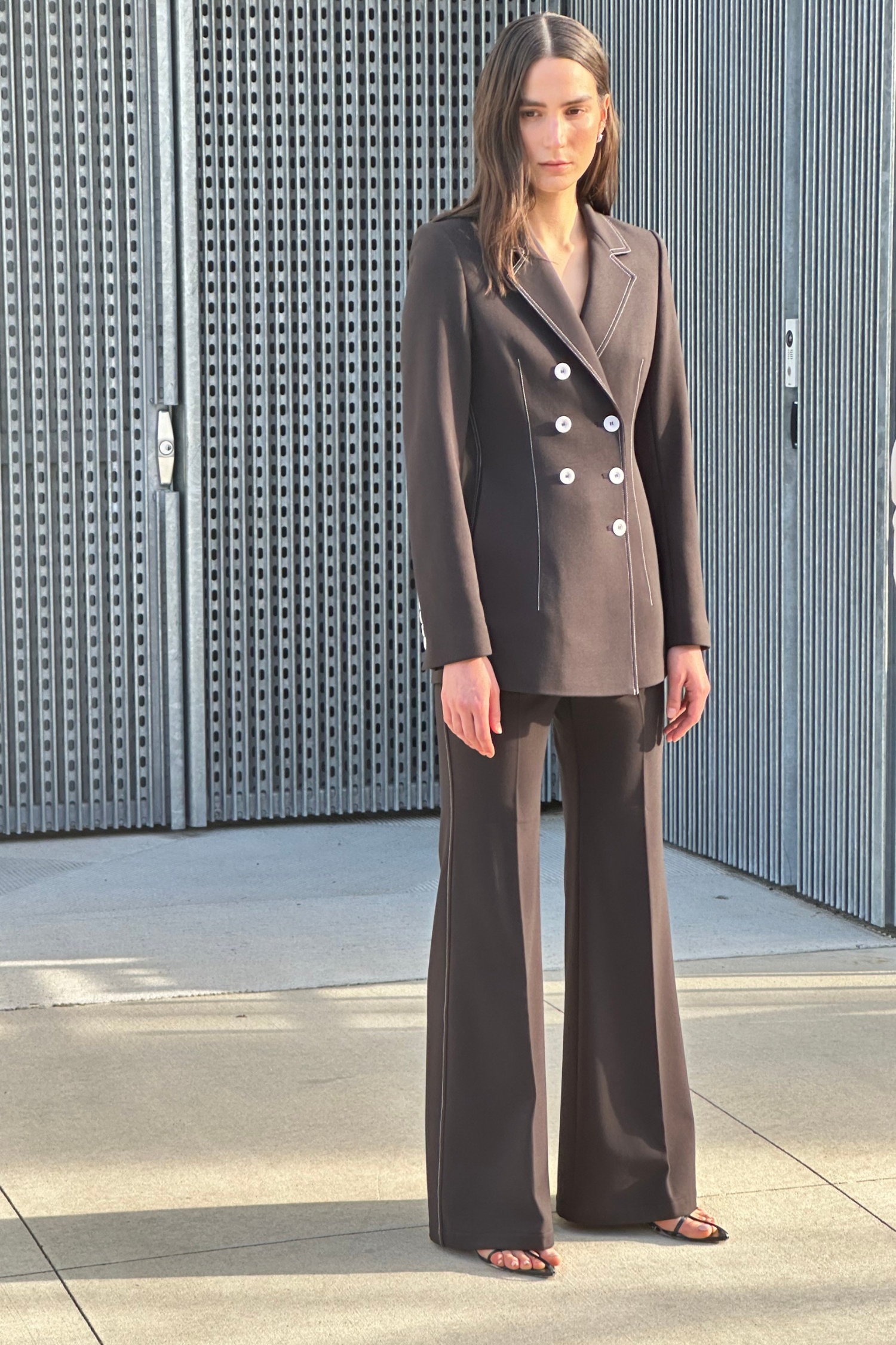 A timeless must-have, the Piper Contrast Blazer elevates any ensemble with its classic silhouette and modern edge. The fitted silhouette, contrast buttons and white top stitch details add a touch of femininity, while the slight stretch and seasonless suiting fabric provide ultimate comfort and versatility. Perfect for any occasion - dress up with our Flo Pant or dress down with our Nessa Denim.