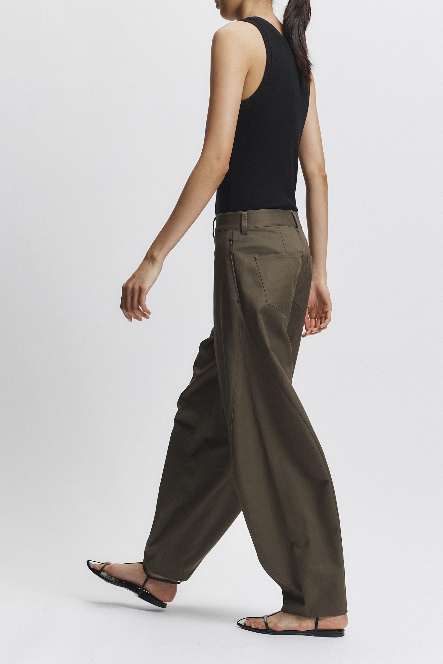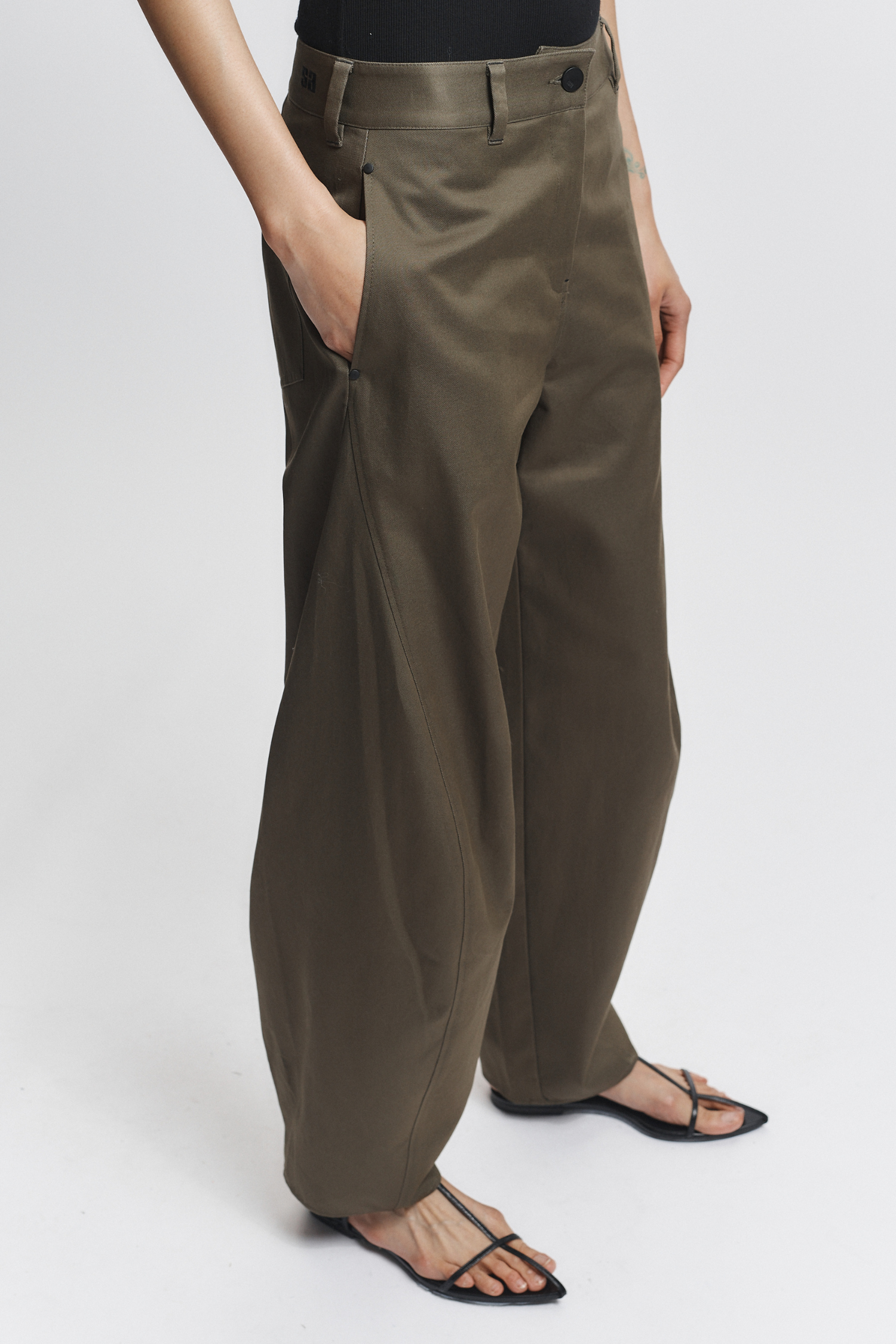 Introducing the Cayden Barrel Trouser in Khaki. Made with a comfortable blend of cotton and tencel, this barrel pant is based on our bestselling Stevie pant and features rivets and SA embroidery details. Upgrade your wardrobe with this stylish and durable addition.
