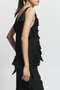 Elevate your wardrobe with the Cade Ruffled Viscose Top in black. Crafted from lightweight viscose, its flowy silhouette and delicate ruffles add refined movement and texture. Perfectly pairs with the Kelce Barrel Trouser in black for a sophisticated, cohesive look ideal for both professional and elegant occasions.