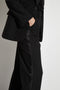 Your most comfortable mid-rise straight leg trouser pants in a clean statement look. Black charmeuse stripe detail down the leg for a classic detail. Saint Art signature wide belt loops, internal closure, and small back welt pockets.