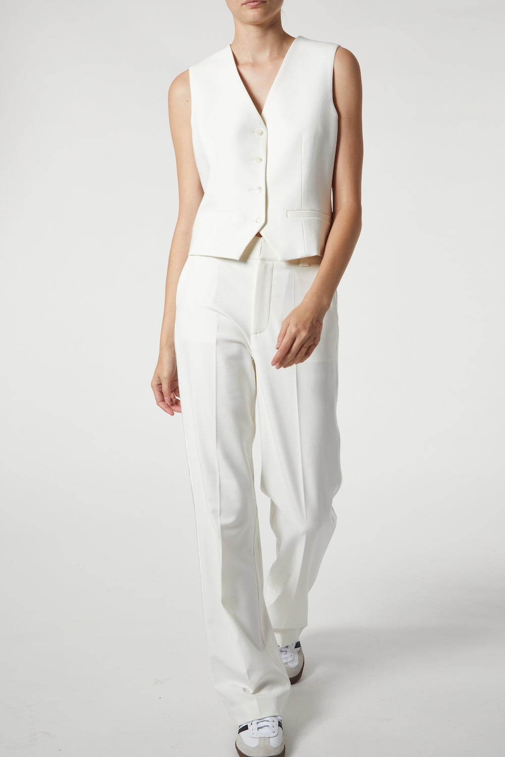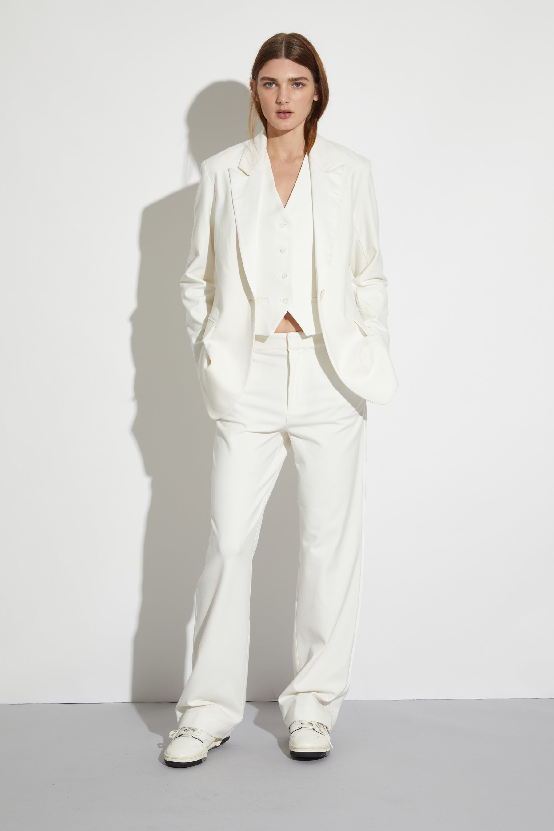 Cait Mid-Rise Straight Leg Tuxedo Pant, White