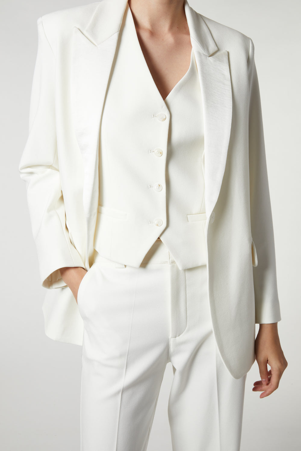 Your most versatile statement piece. Our classic tuxedo inspired waistcoat is both an elevated item and classic wardrobe builder. Tonal satin charmeuse back, four button closure, and mini pockets at the front give this item elevated details. Elegant, soft, refined - comfort meets elegance.