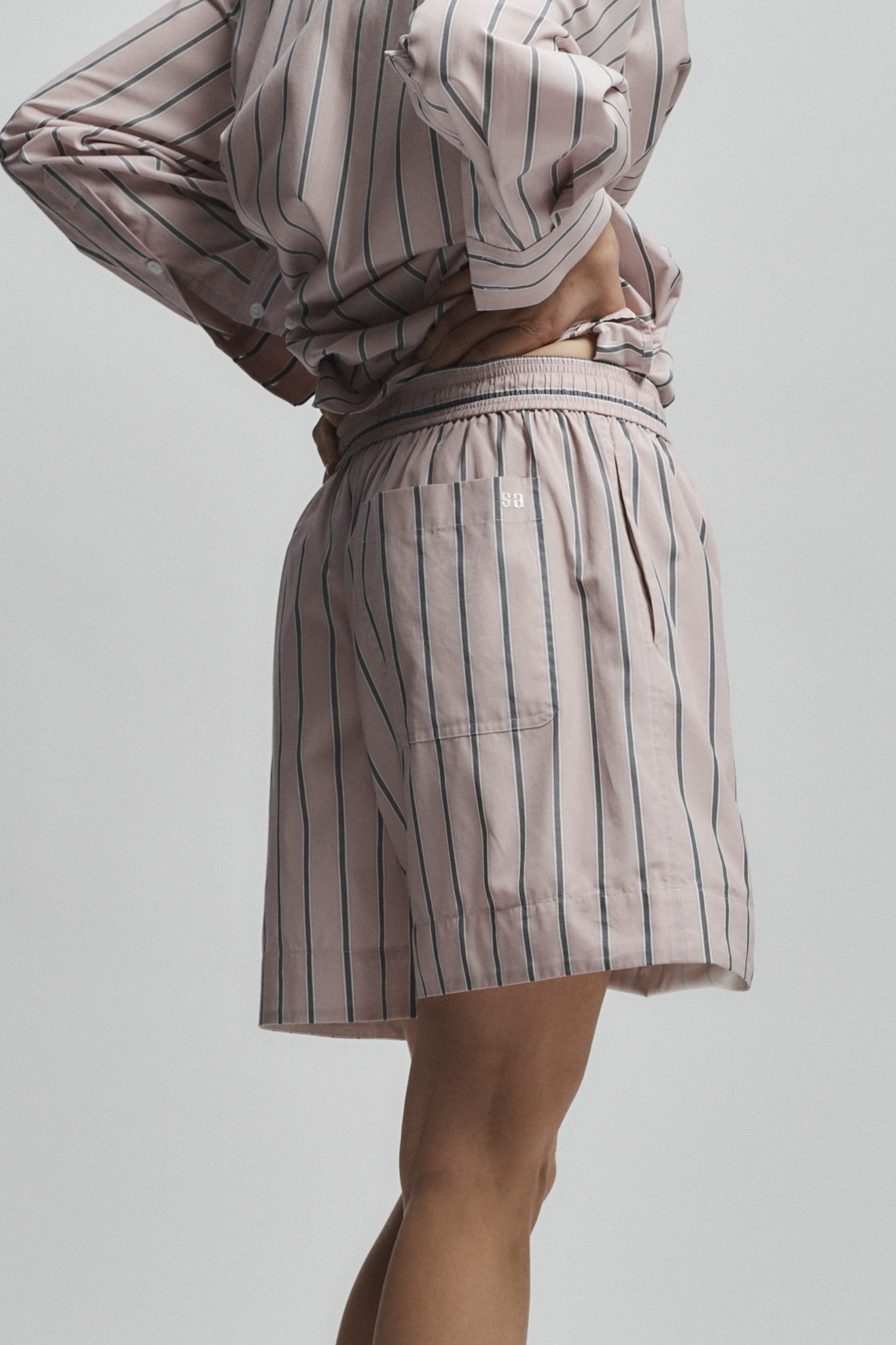 The Lexie Short is expertly tailored with a poplin fabric and optional roll-up hem, providing a casual yet refined look. The pink stripe adds a pop of color, while the drawstring and pockets offer convenience and versatility. Complete the set with the Lara blouse or tee shirt for an effortless everyday outfit.