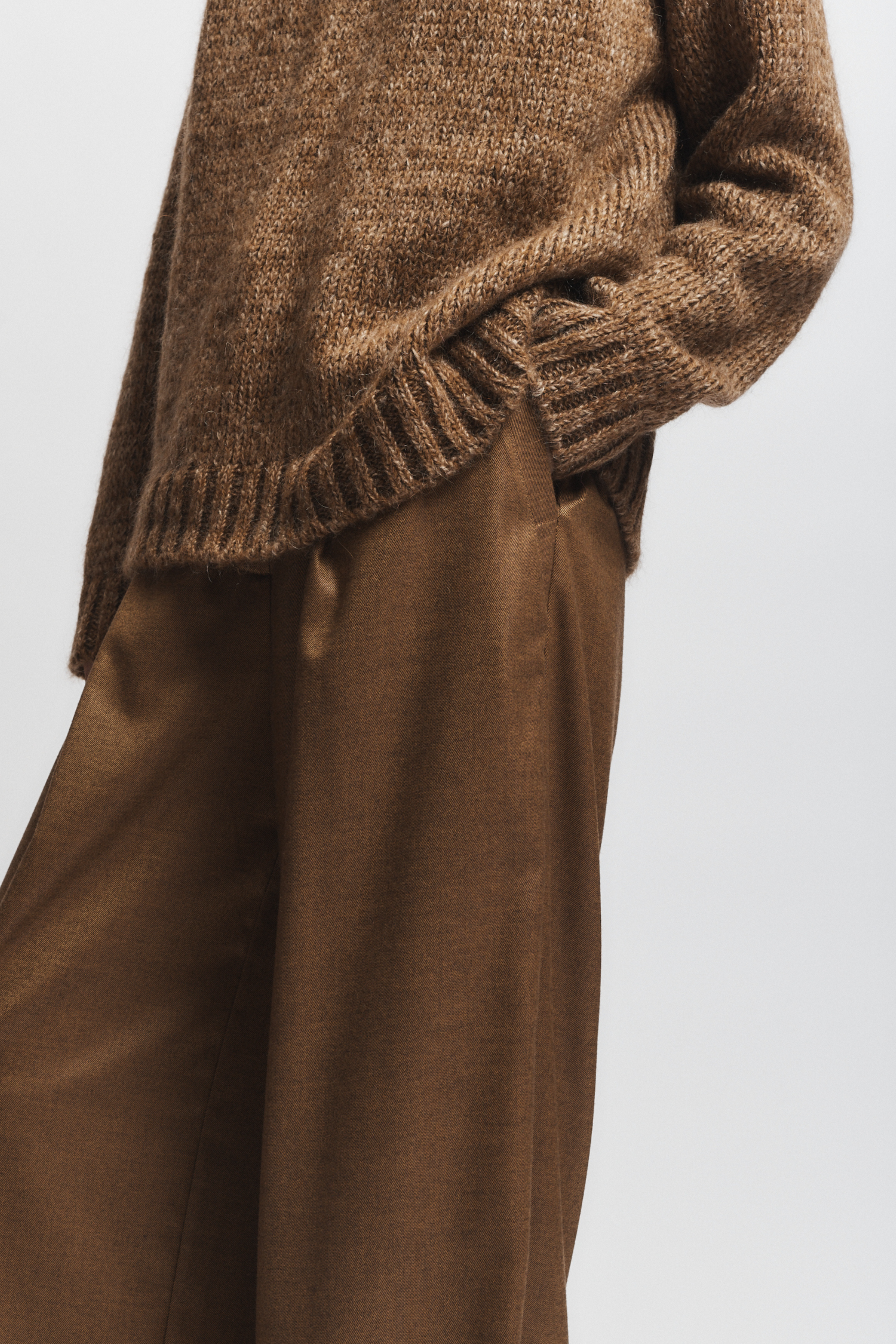 The Aurora Sweater in camel offers a warm, versatile hue that pairs effortlessly with the Nevin trouser. Designed for a loose, comfortable fit, this sweater provides both style and ease, making it an ideal choice for relaxed yet polished looks. Its soft texture and flattering silhouette ensure all-day comfort without compromising on sophistication.