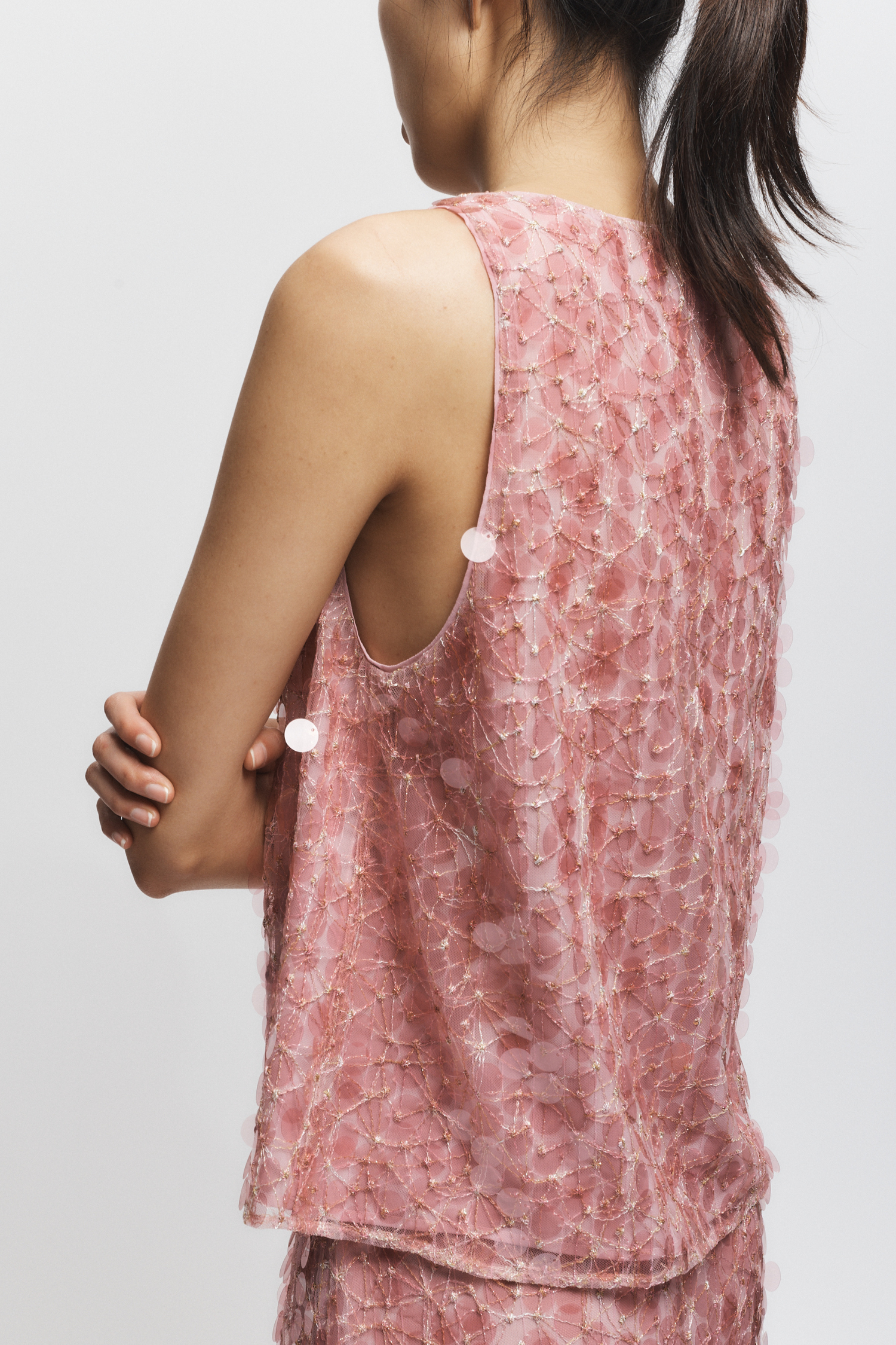 Sol Mesh Sequin Top, Blush