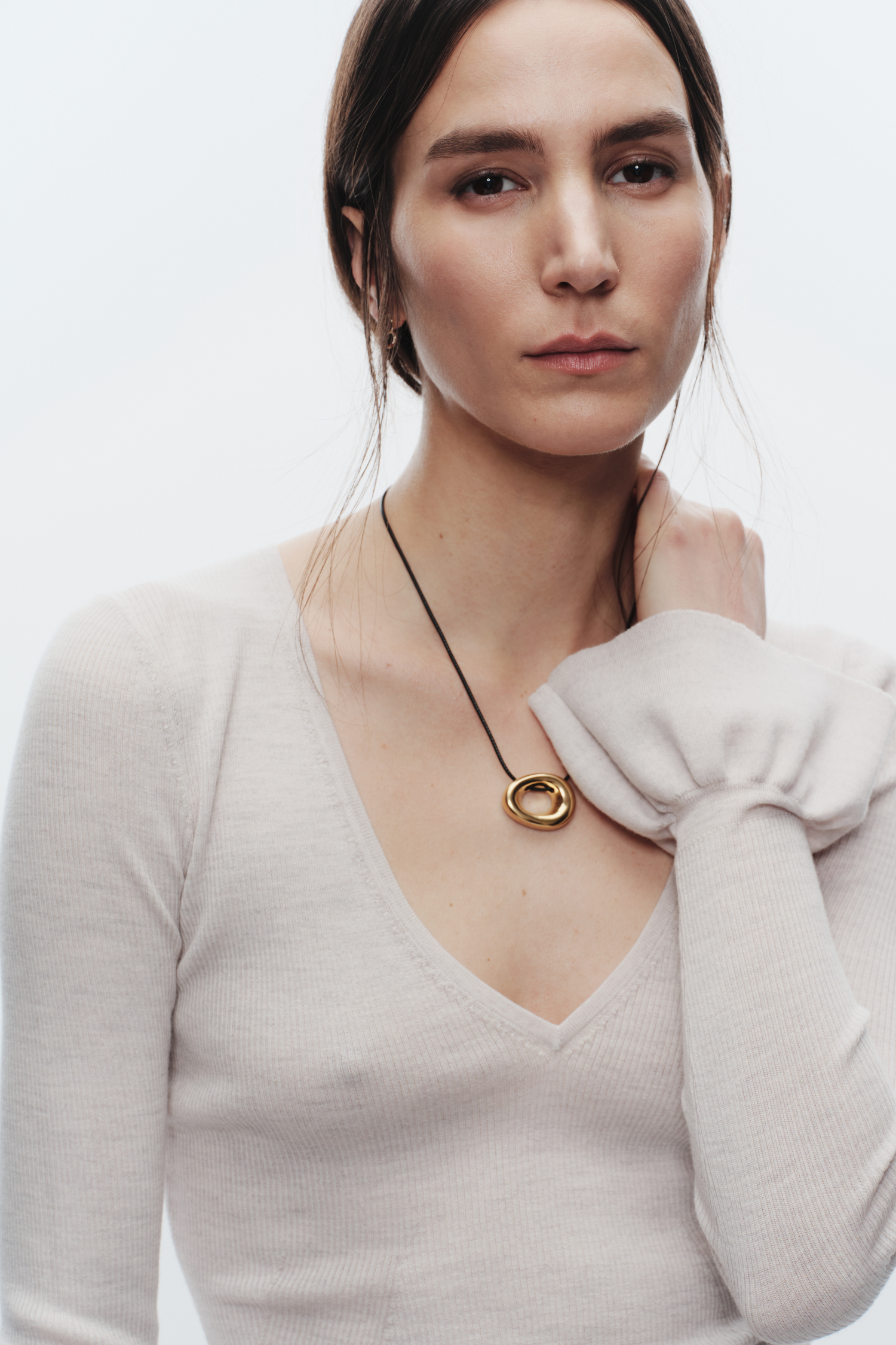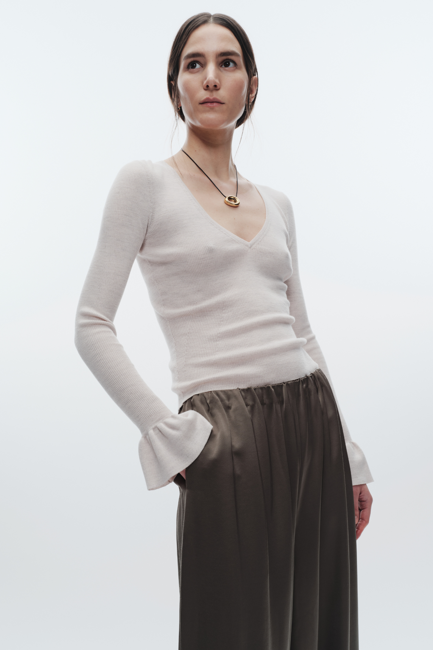 - V-neck ribbed merino wool sweater