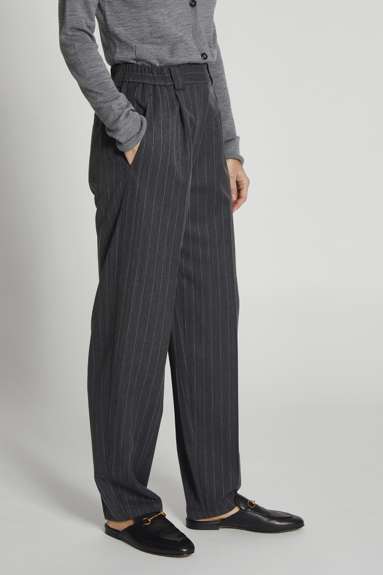 Chester Pinstripe High Waisted Pant, Grey