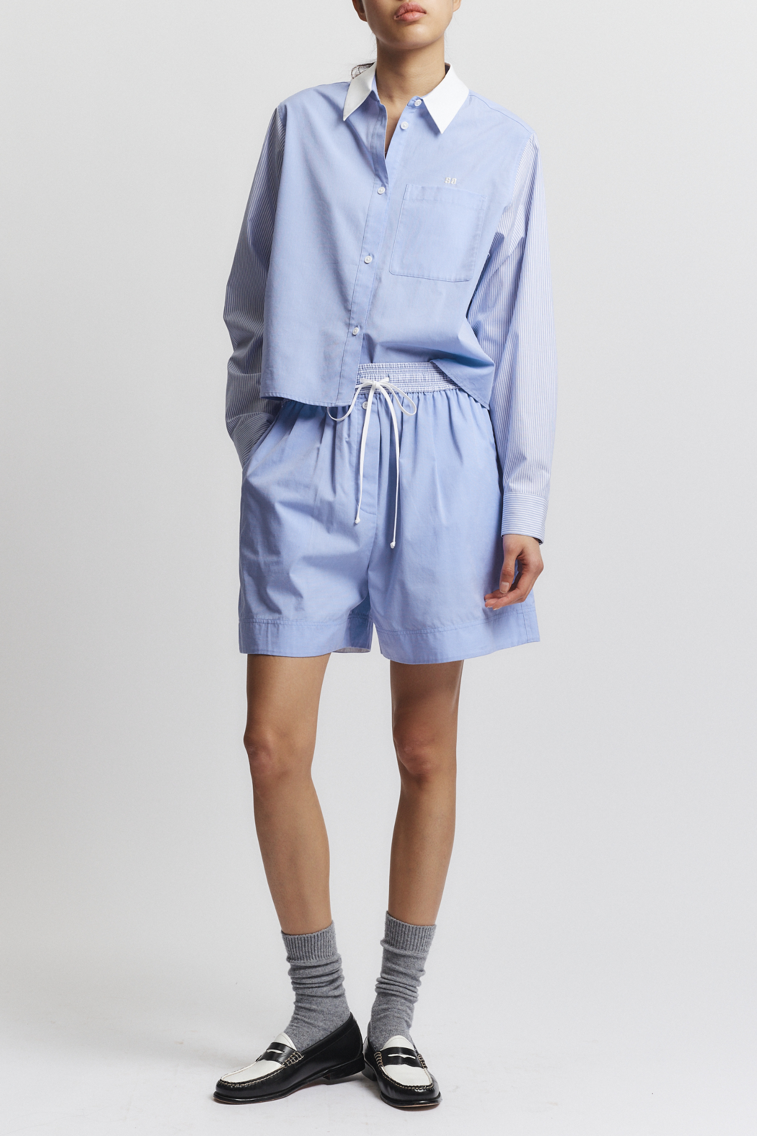 The Dalton Cropped Shirt boasts a unique mix of poplin, stripes, and contrasting colors, elevated by a small SA logo. Its cropped length makes it versatile for pairing with jeans or our signature poplin boxer shorts for effortless style. Expertly crafted, this shirt offers a modern and sophisticated touch to any wardrobe.