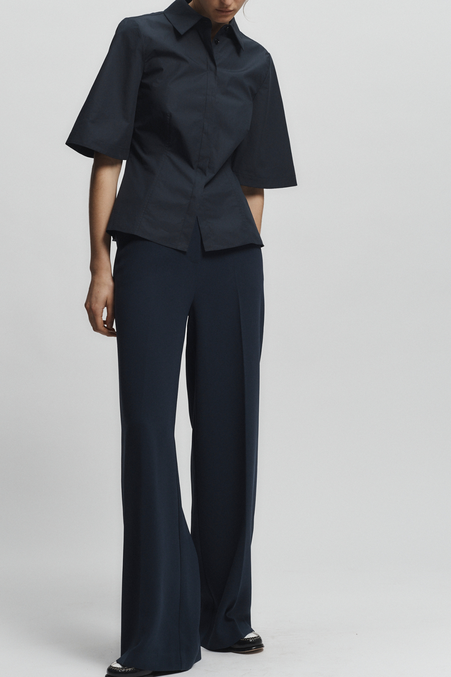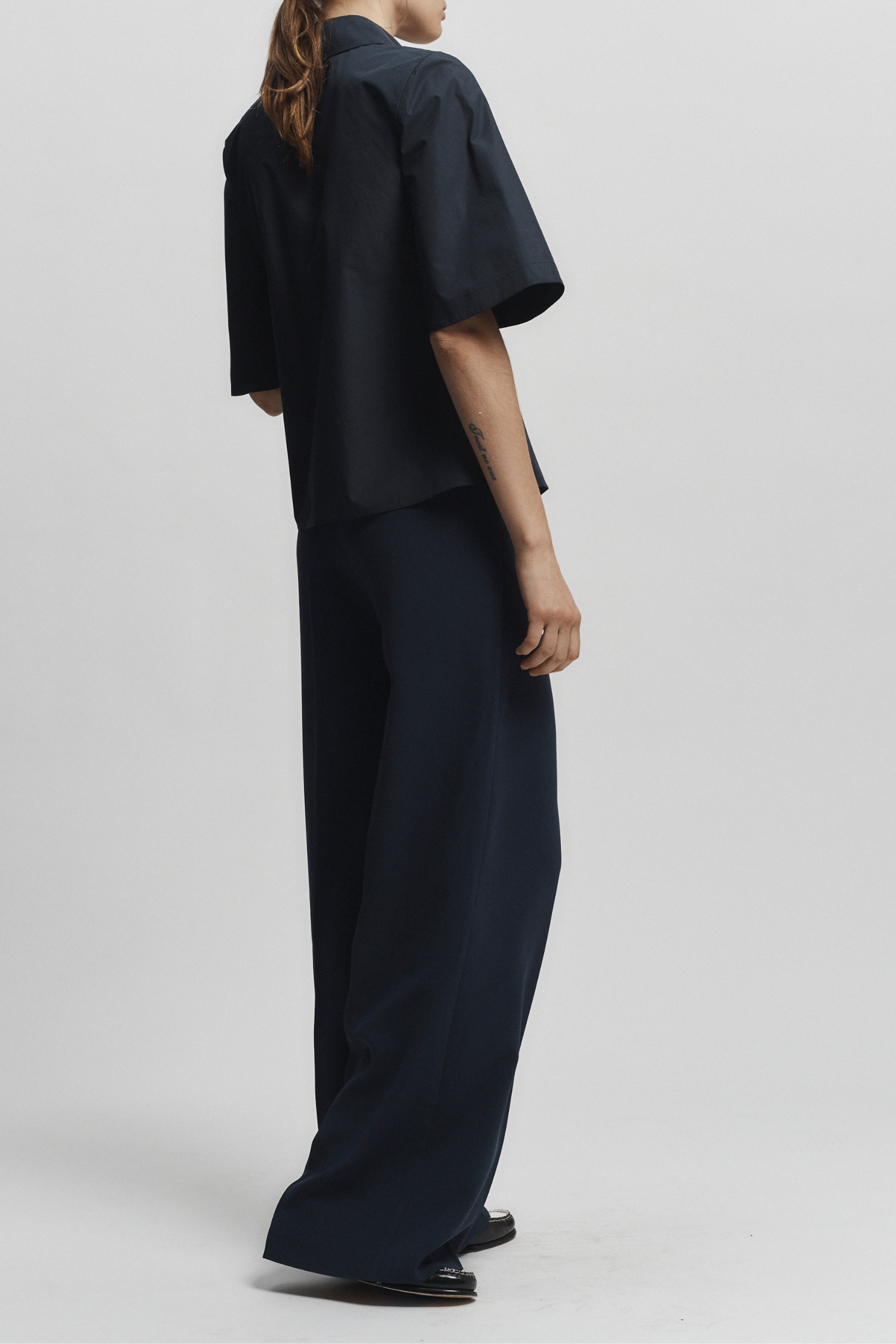 Expertly crafted from soft and crisp poplin fabric, the Dion Short Sleeve Buttondown in navy provides ultimate comfort and style. Its elbow length sleeve pairs perfectly with the Rhodes pant, making it a versatile addition to any wardrobe. Elevate your look with this sophisticated and timeless piece.