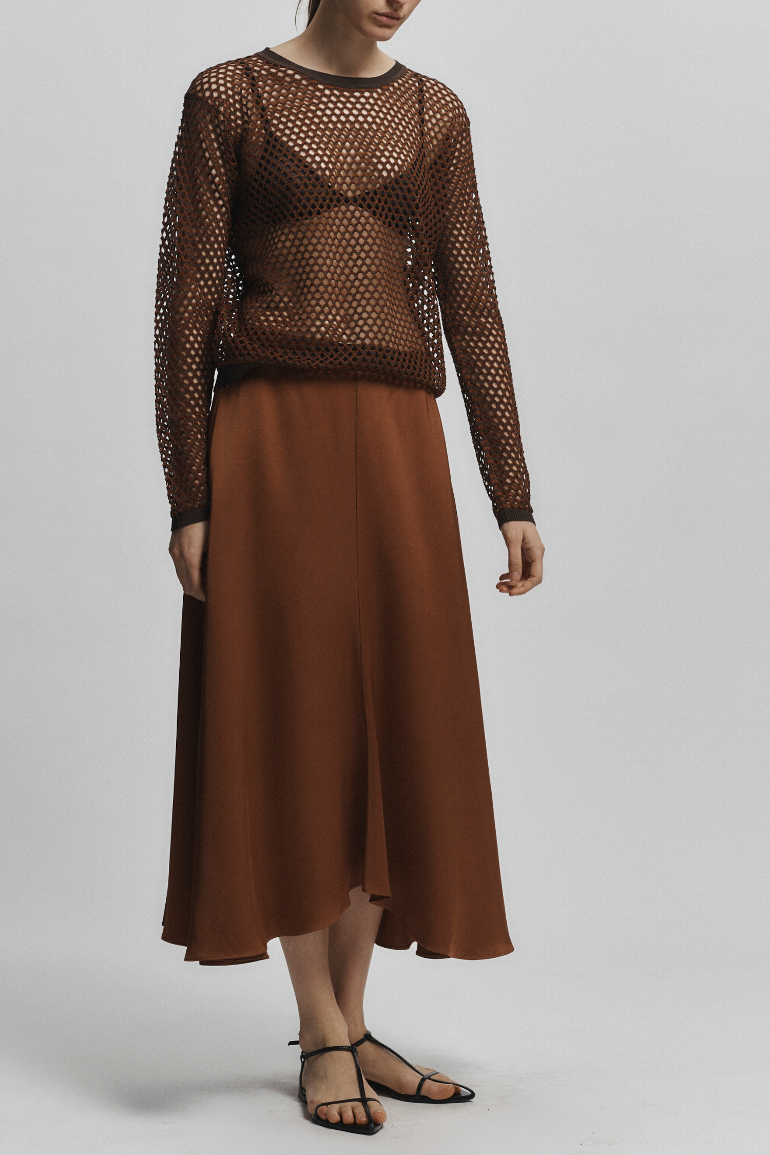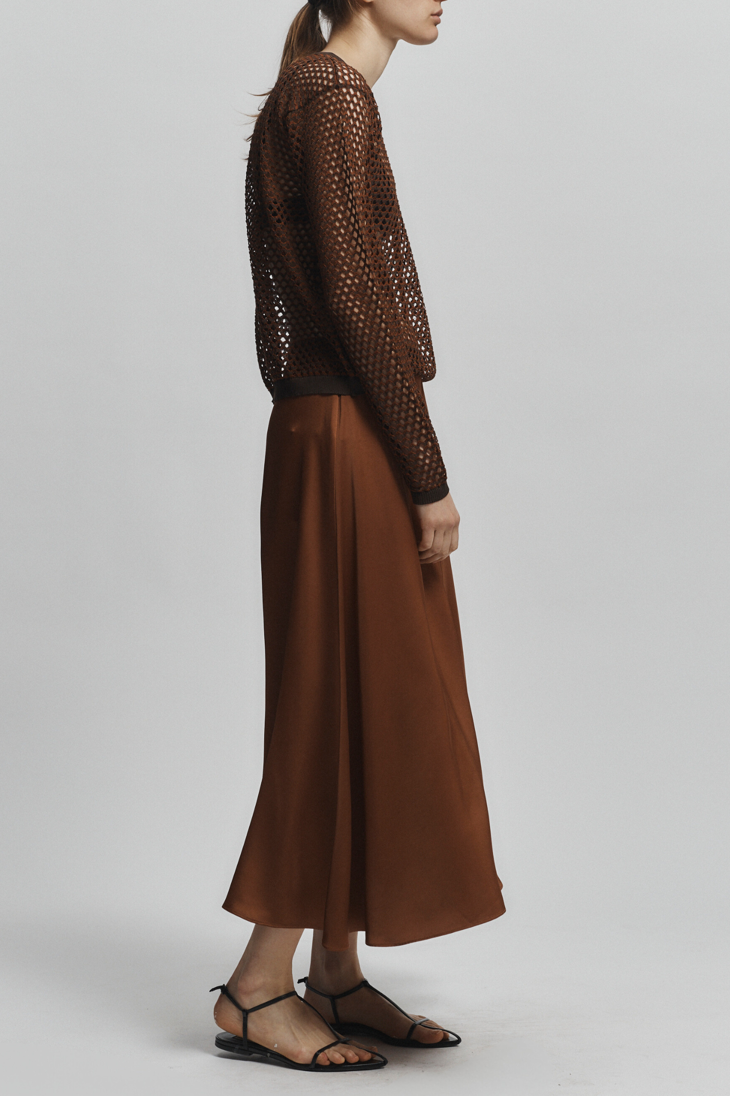 The Frieda A-Line Skirt in Gingerbread is a versatile piece that is both stylish and practical. Its midi length and a-line shape flatter all body types, while the heavy charmeuse fabric gives it a luxurious feel. Plus, it's machine washable for easy maintenance. Pair it with our Laurel Knit Top for a complete and chic look.