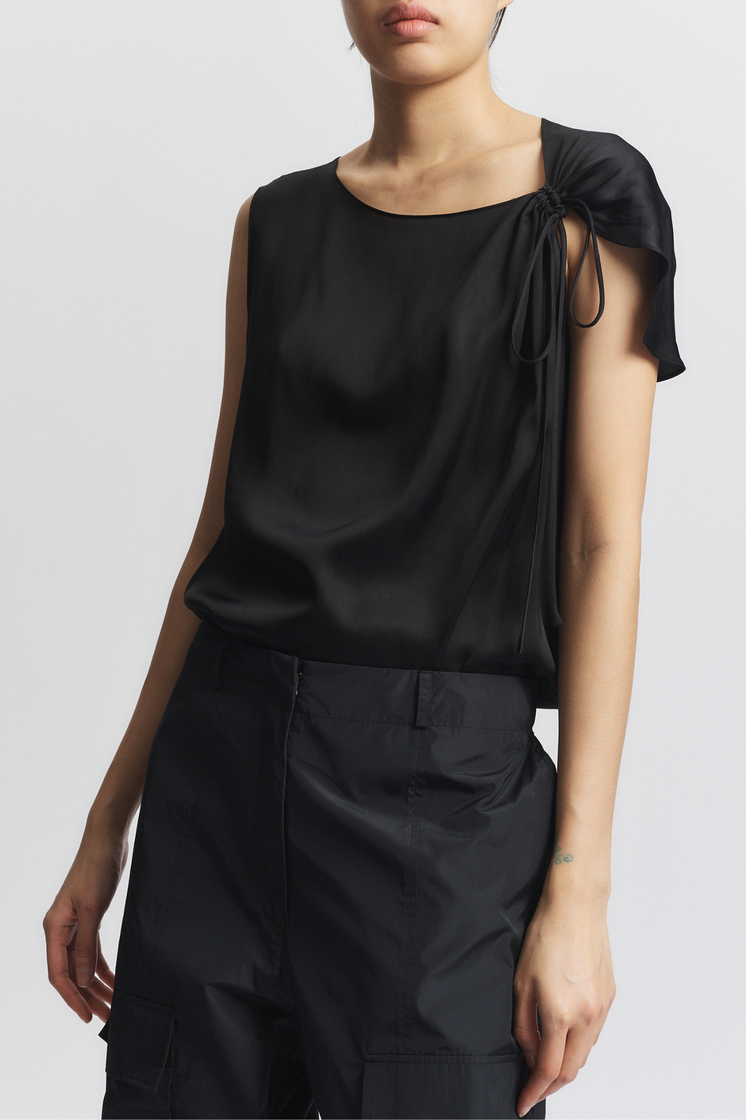 The Lola Tie Blouse adds the perfect touch of elegance to any outfit. Made with viscose shine fabric and featuring an adjustable tie on the shoulder, this versatile top is an easy and classic staple for any wardrobe. Plus, it's machine washable for added convenience. Elevate your style with the Lola Tie Blouse.