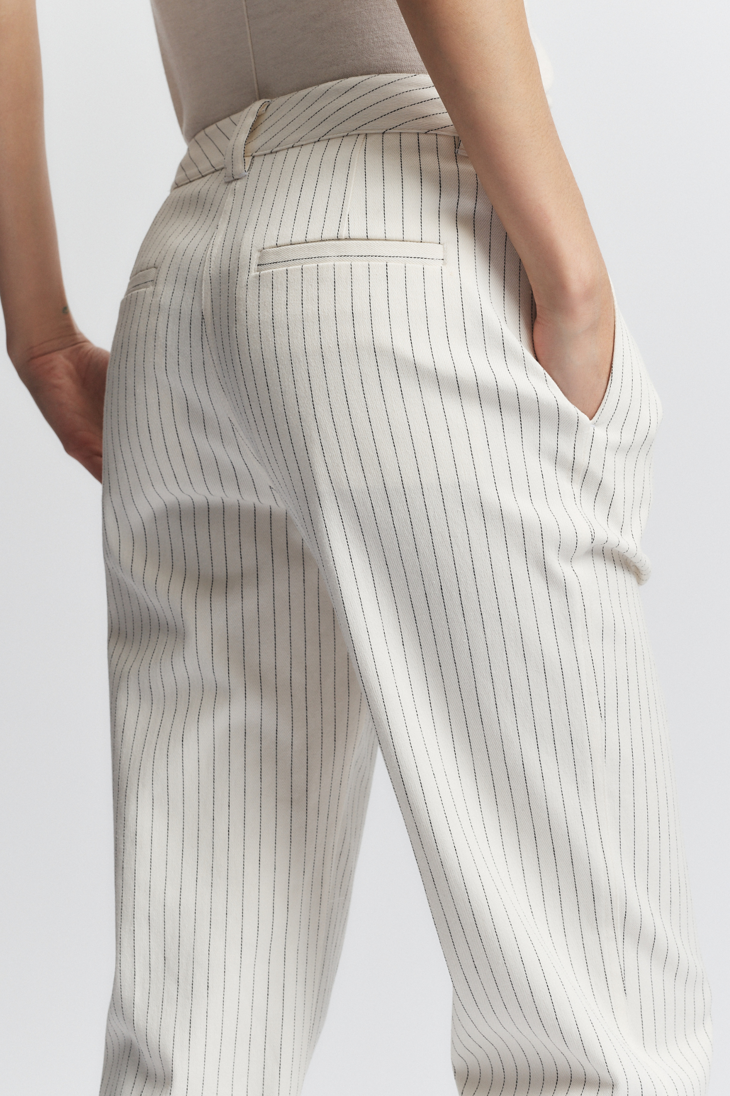 Noelle Slim Straight Trouser, Ivory Pinstripe