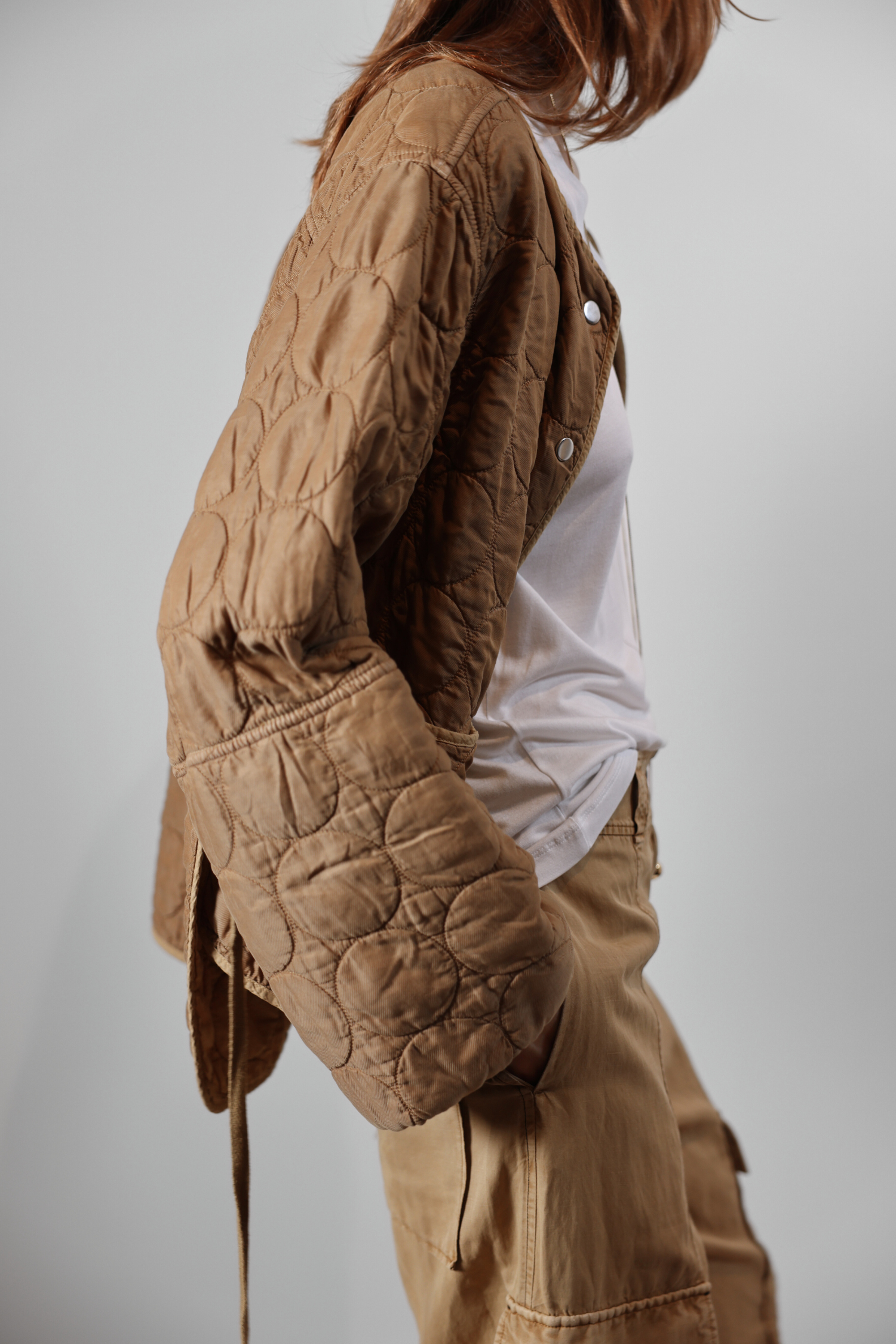 Expertly crafted, the Oliver Quilted Jacket offers both style and functionality. With a quilted design and ultra-soft feel, it's perfect for cool summer nights and transitioning into fall. The garment dye adds a richness to the hue, while the internal snaps and drawstring waist provide customizable closure and fit. Complete with convenient front pockets. This season-less jacket is a must and timeless addition to any wardrobe.