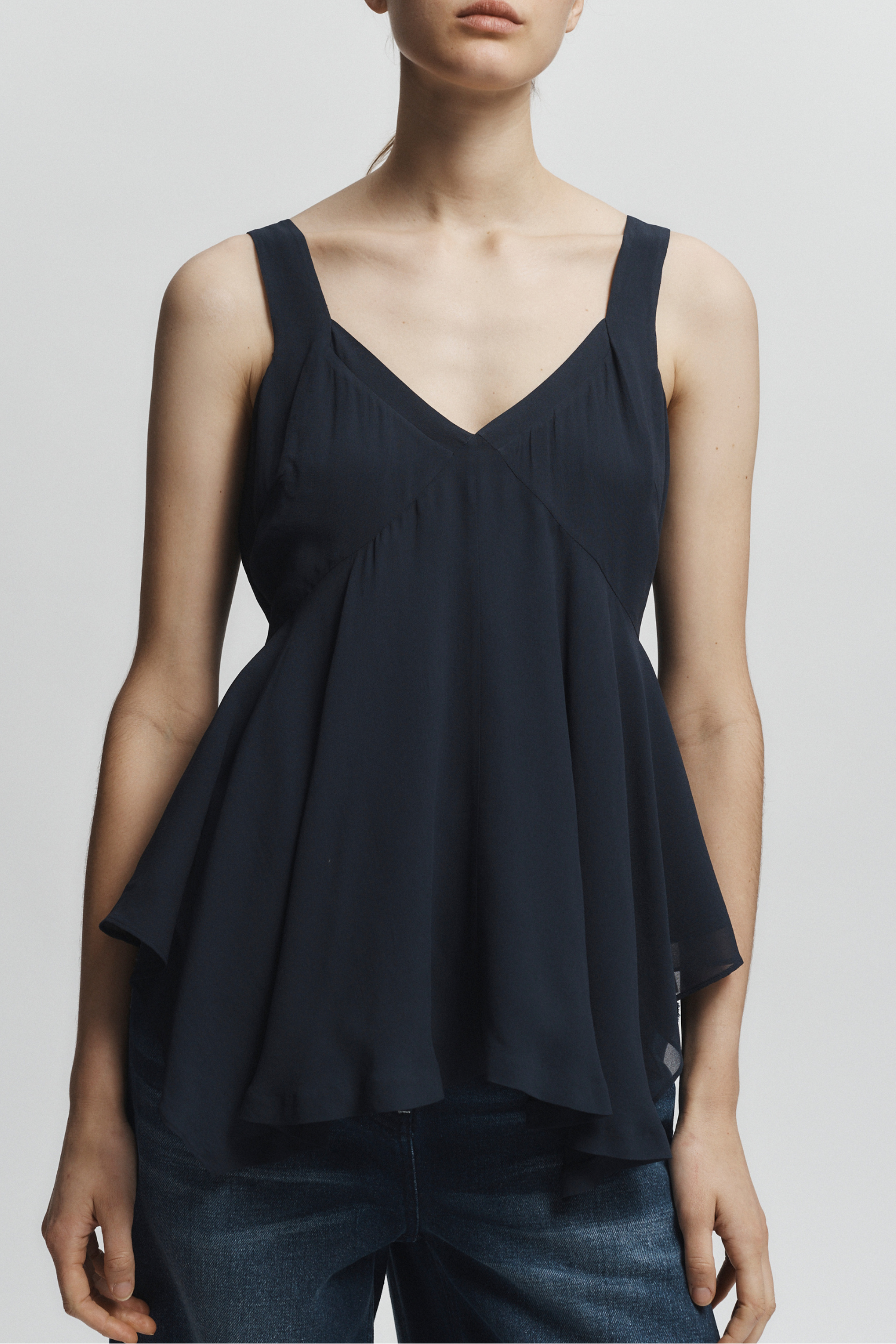 Expertly crafted from soft chiffon fabric, the Raina Handkerchief Top in navy is a versatile piece that effortlessly elevates any outfit. Its elegant v-neck and draped design flatters any figure, making it a must-have addition to your wardrobe. Pair it with the Stevie jean for a complete and stylish look.