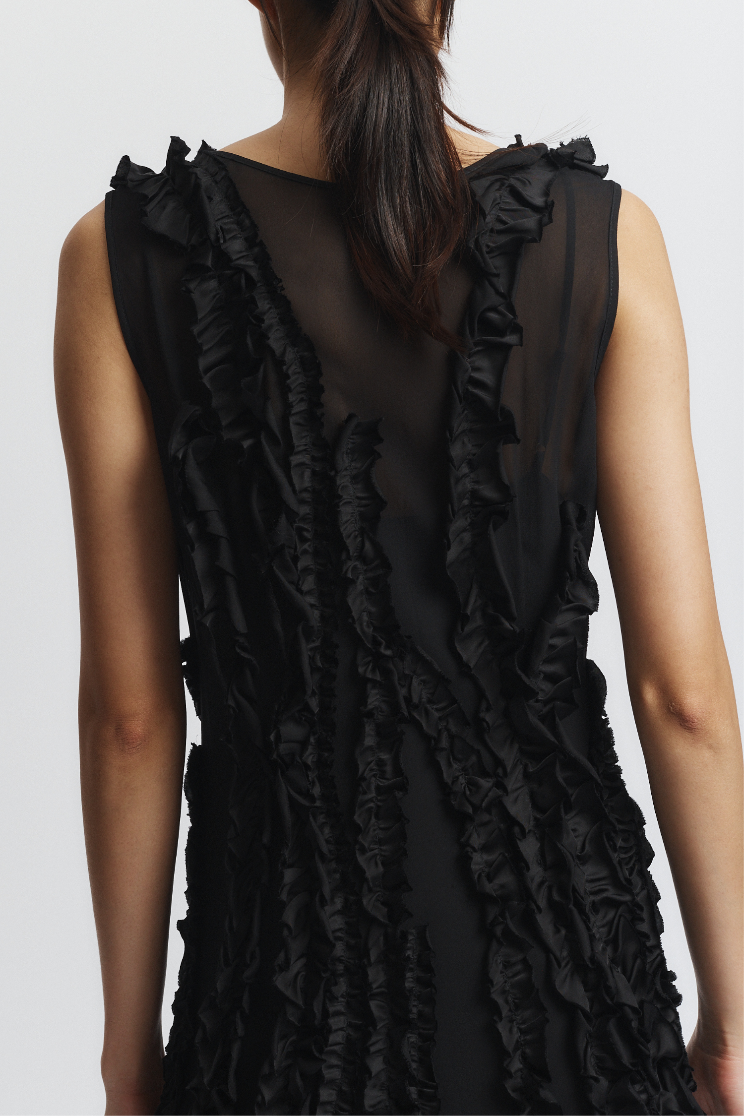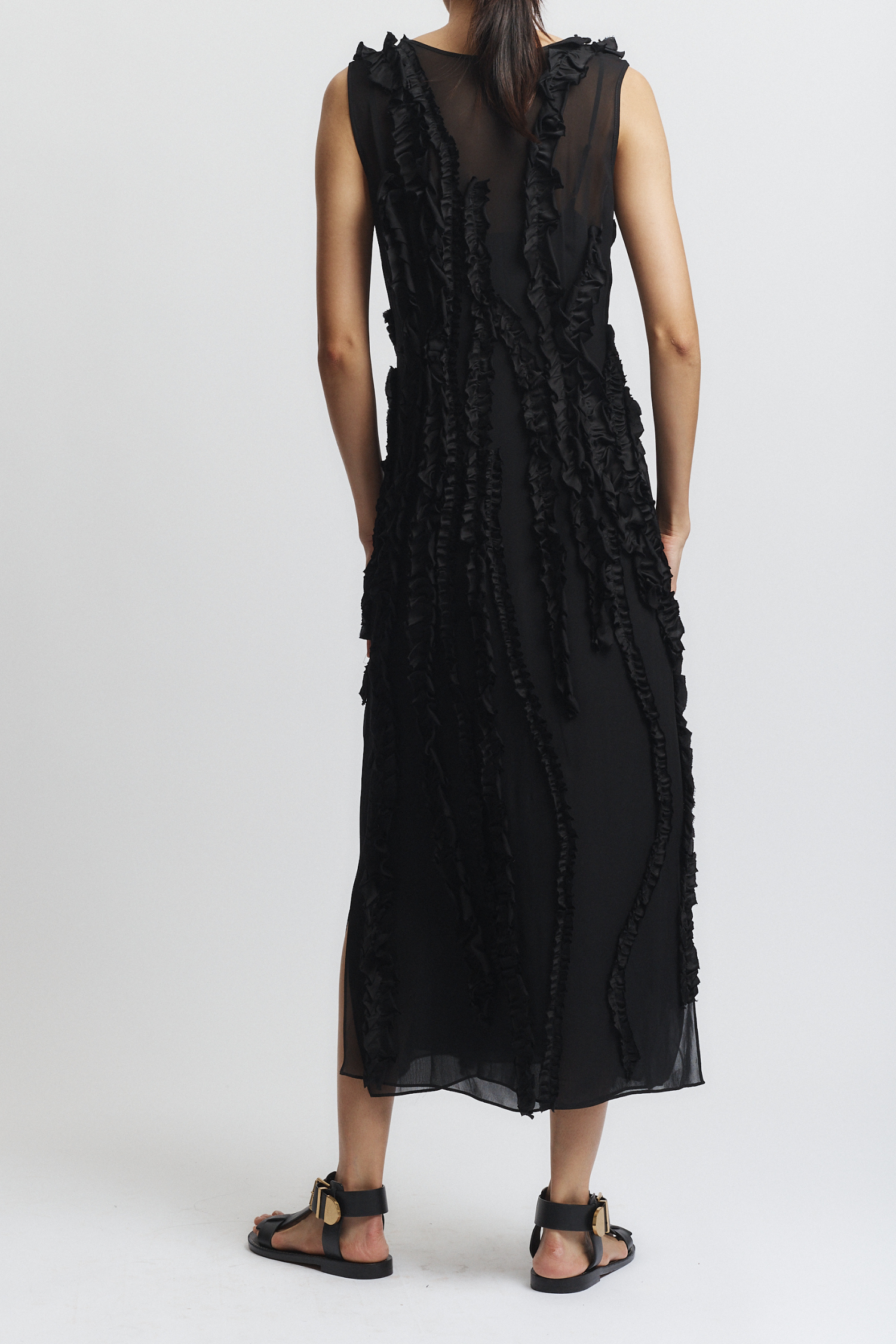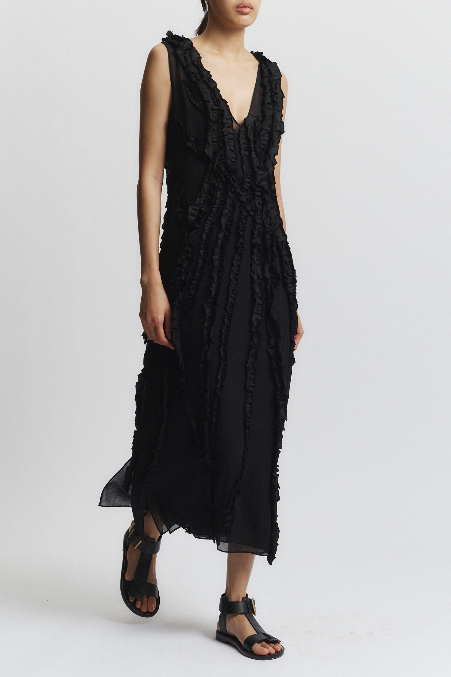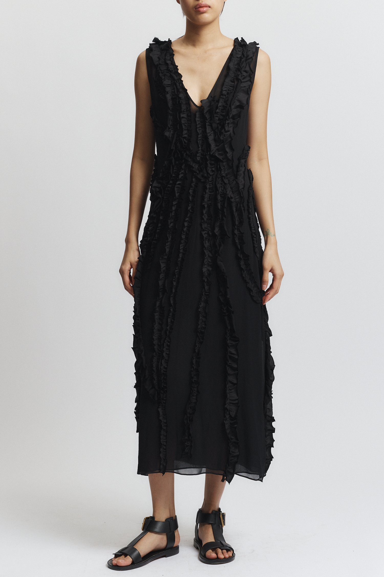 Expertly crafted with chiffon and a viscose shine ruffle, the Renata Shift Dress exudes elegance with its matte and shine look. The V-neck design and relaxed fit make it easy to wear, while the removable slip and midi length add versatility. Complete with a zipper at the back, this dress is a must-have for any occasion.