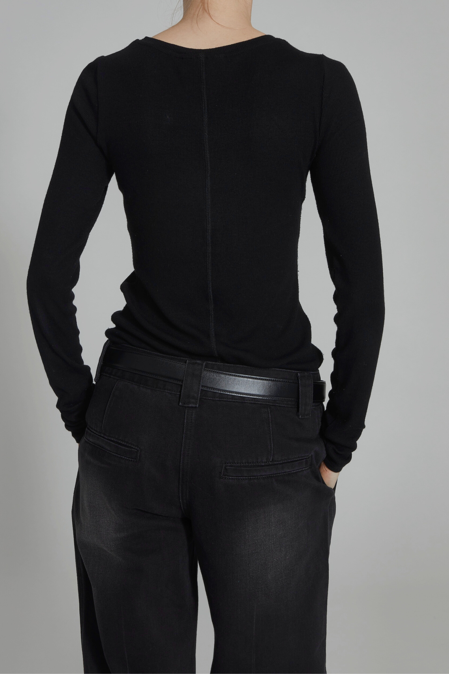 Elevate your everyday wardrobe with the Rio Long Sleeve Ribbed Viscose Stretch Top. Crafted from a luxurious blend of Italian made fibers, it provides a stretch fit and an elevated feel that sets it apart from typical lounge-wear. With a discreet seam at the back for a tailored fit, it is an essential wardrobe builder that is suitable for any occasion, from casual outings to more formal settings.