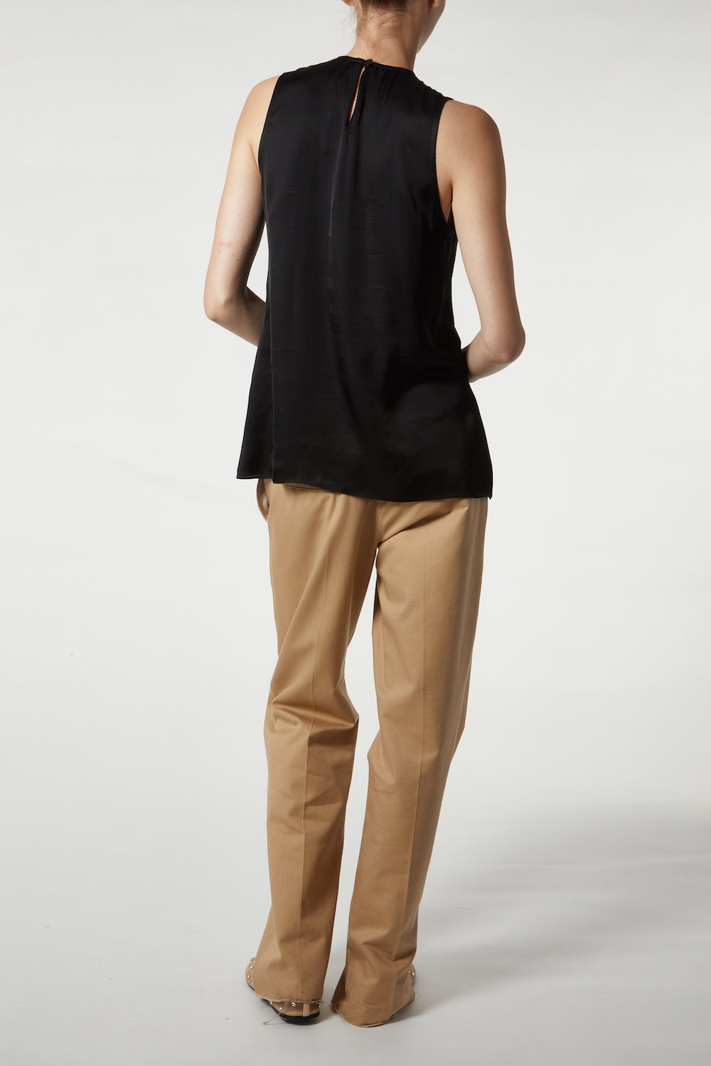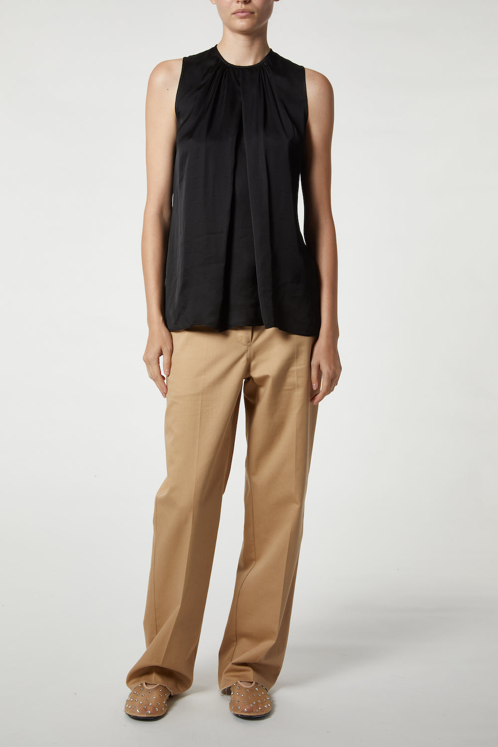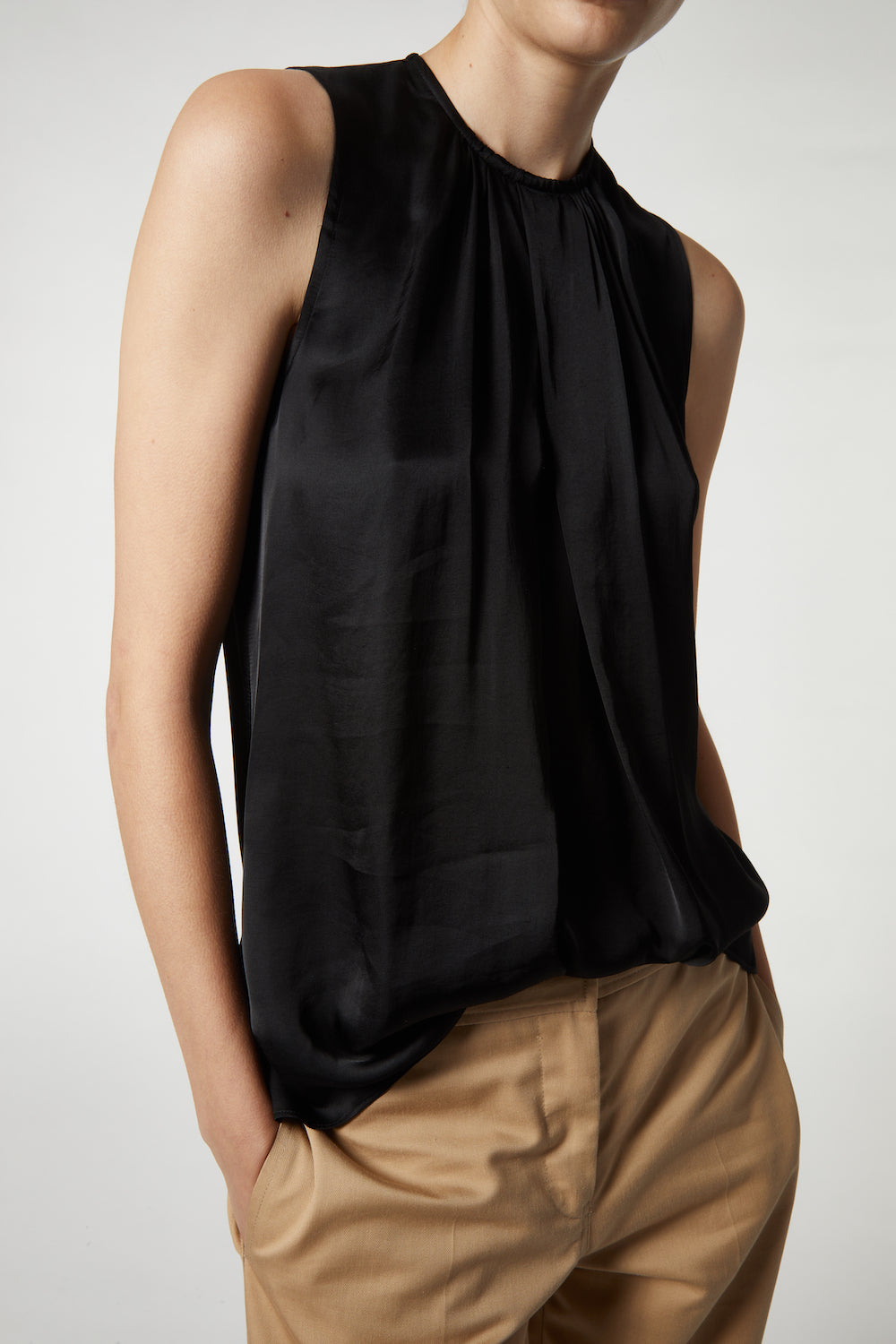 Introducing our Sadie Sleeveless Blouse, a harmonious blend of style and comfort. Crafted from a luxurious machine-washable viscose blend, this blouse offers a smooth and lightweight feel against your skin. The slight gathering details add a touch of sophistication while providing an elevated and easy fit that complements your silhouette effortlessly. Designed for versatility, the tank style allows for easy pairing with both casual and dressy ensembles. Whether you're headed to the office or a social event, this blouse ensures a refined look with minimal effort.