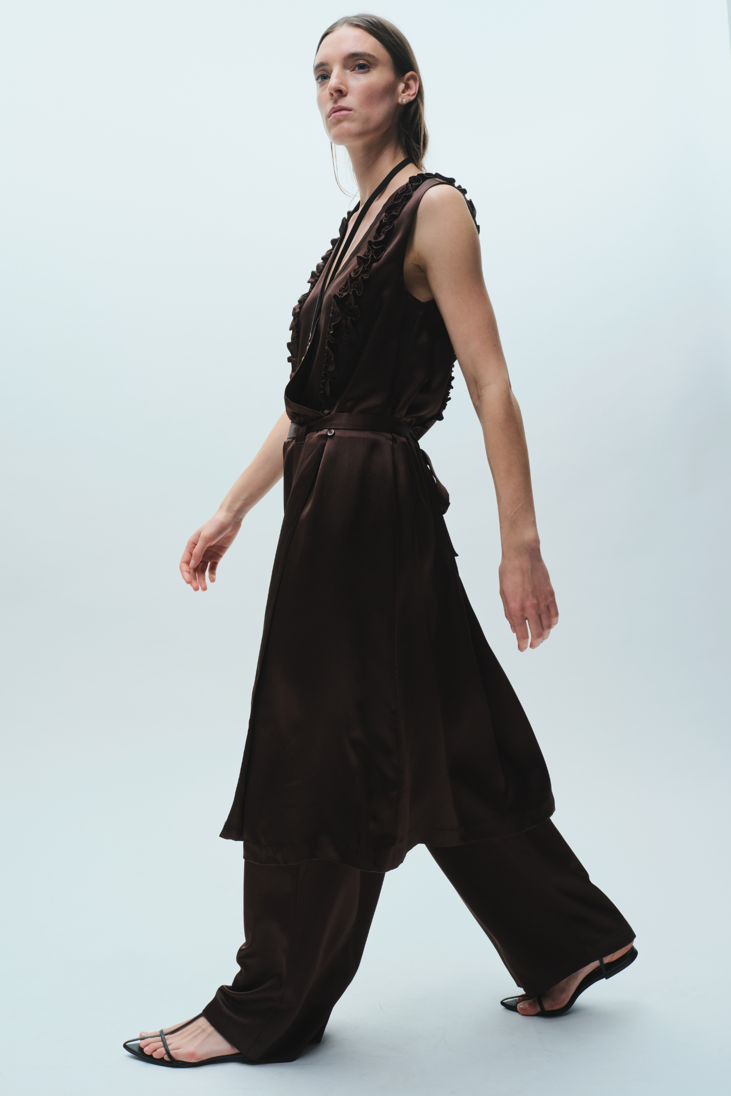 Expertly crafted from luxurious hammered silk, the Sylas Silk Wrap Dress will elevate your wardrobe. Featuring a flattering v-neck and versatile wrap design, this dress is perfect for any occasion. With its below the knee length, it's both stylish and sophisticated. Add this classic piece to your collection for a timeless look.