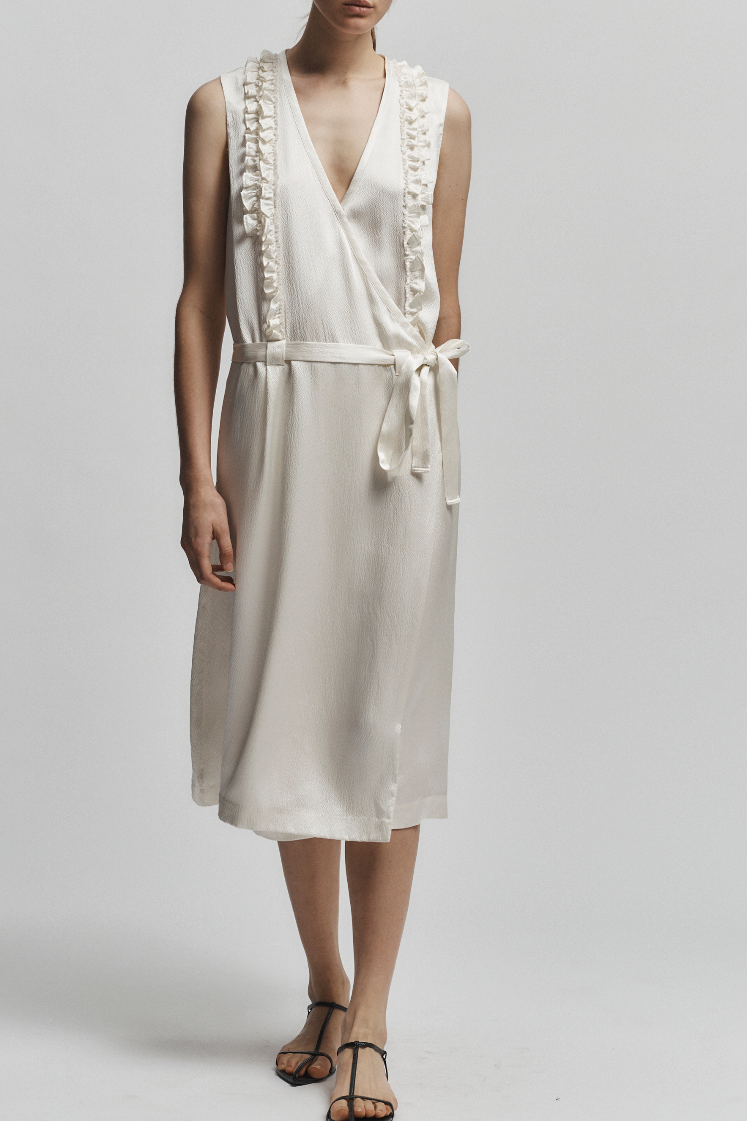 Indulge in luxury with the Sylas Silk Wrap Dress. Made from hammered silk, this v-neck wrap dress exudes sophistication. With its flattering below the knee length, it is perfect for any occasion. Experience the comfort and elegance of this timeless piece.