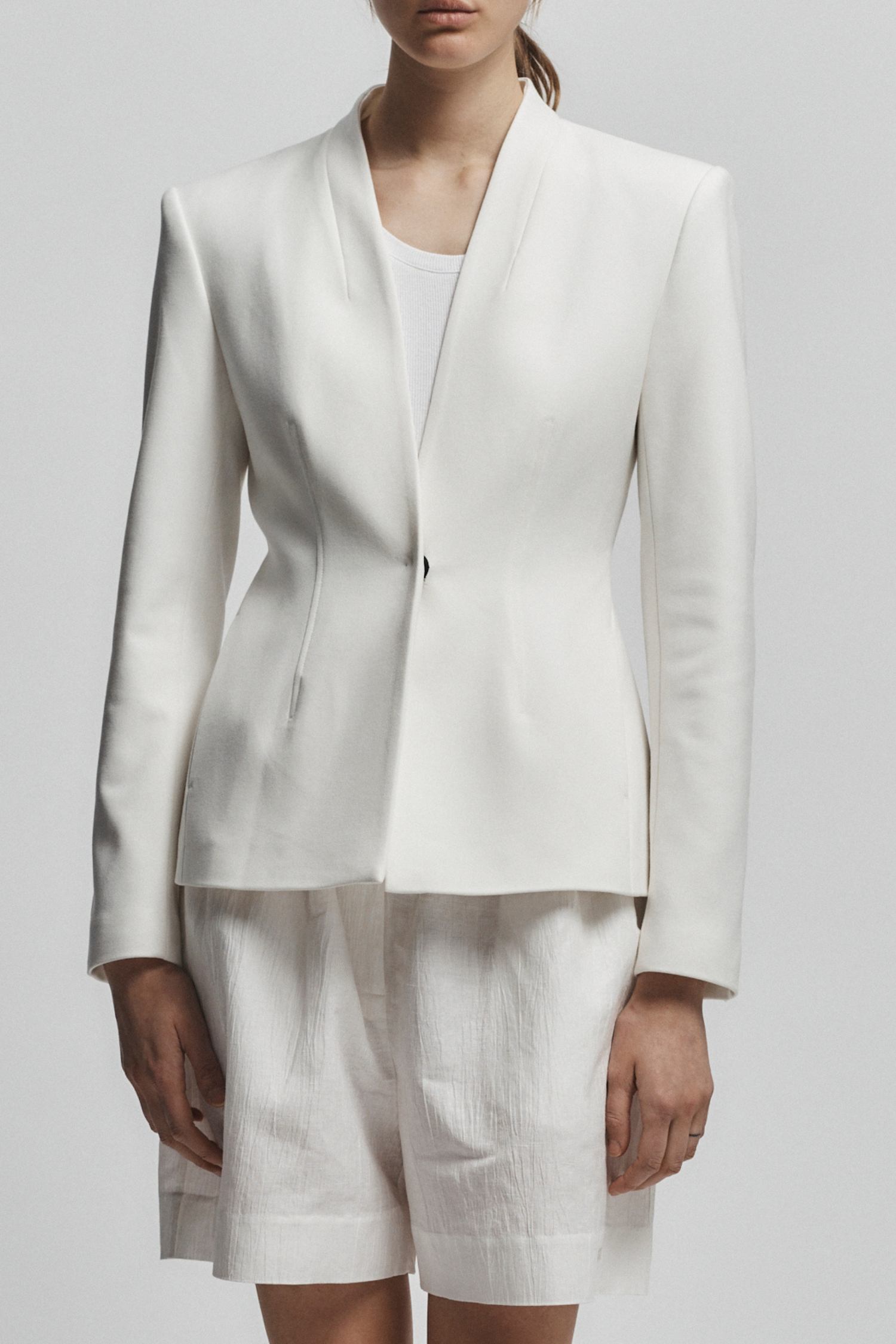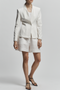 The Aria Tailored Blazer in White is perfect for adding polish to any outfit. The contrast front snap adds a touch of style, while its versatility allows for endless styling options. Pair with the Oscar linen short for a chic and sophisticated look.