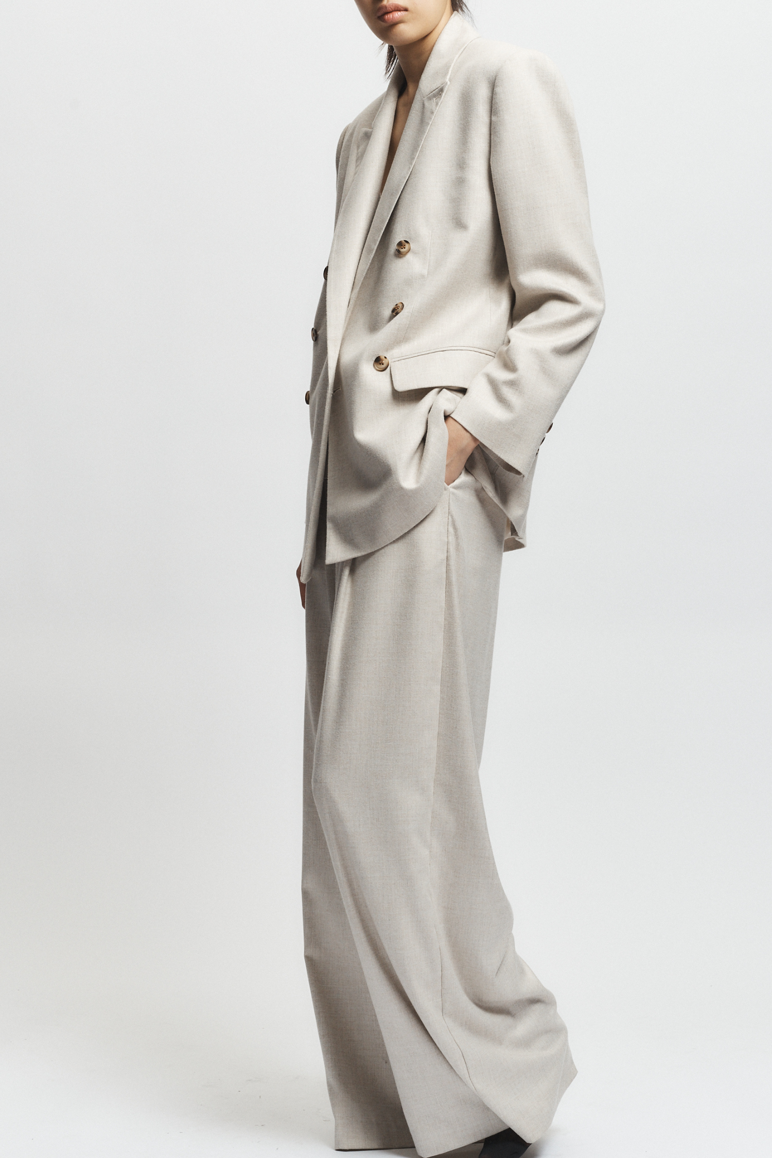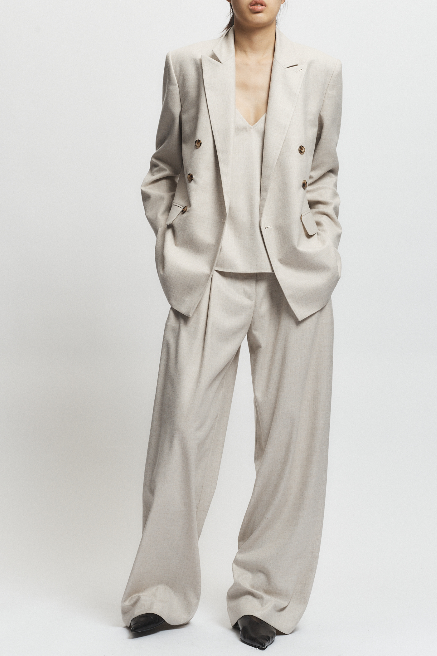 Crafted from breathable viscose fabric, the Nevin Mid-Waisted Lightweight Trouser in oatmeal offers a relaxed wide-leg silhouette that balances comfort with sophistication. Its versatile hue and tailored fit make it ideal for any occasion, seamlessly pairing with the Sullivan double-breasted blazer in oatmeal for a polished, cohesive look. Perfect for elevating your wardrobe with effortless style and expert craftsmanship.