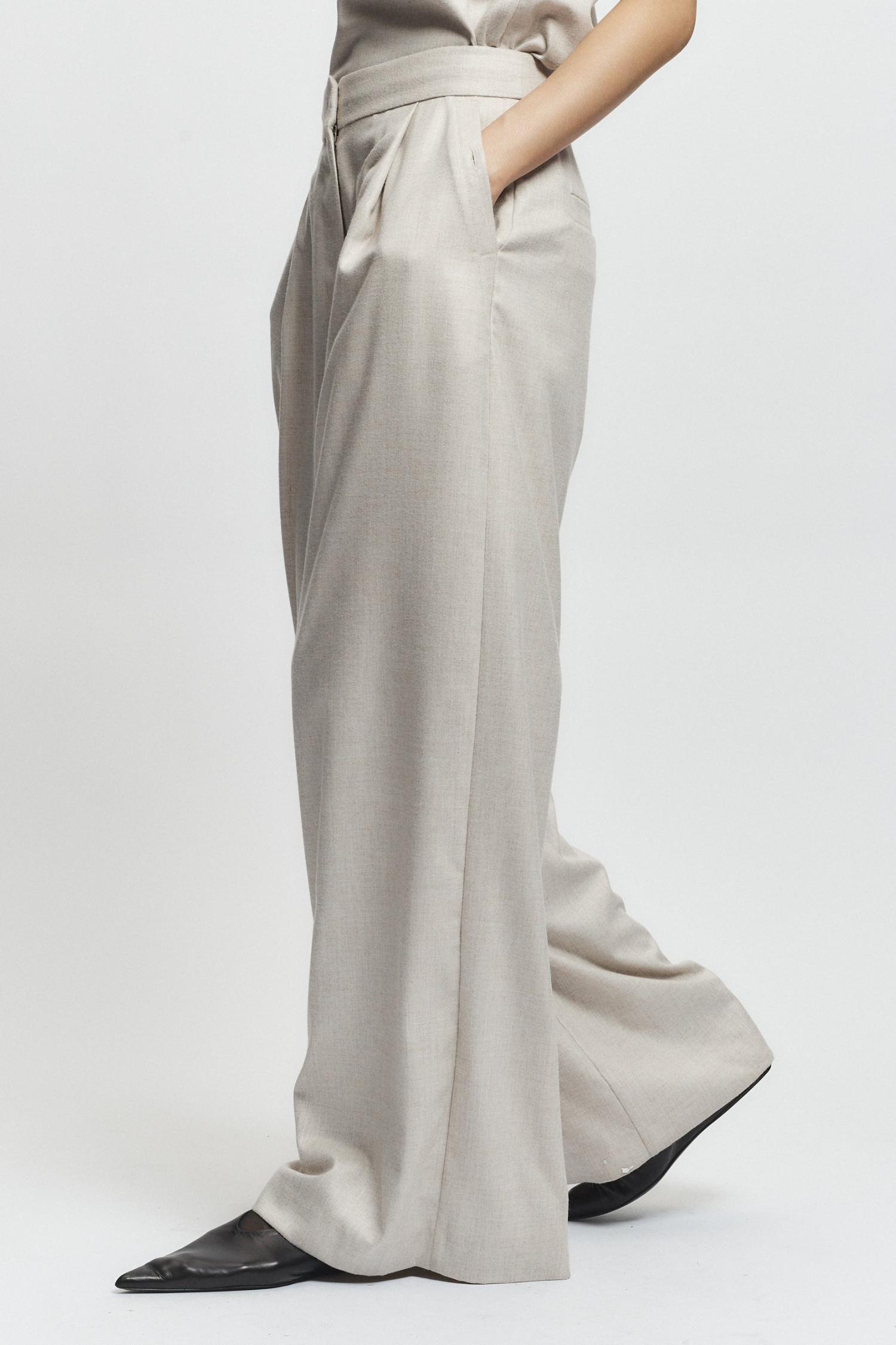 Nevin Mid-Waisted Lightweight Trouser, Oatmeal