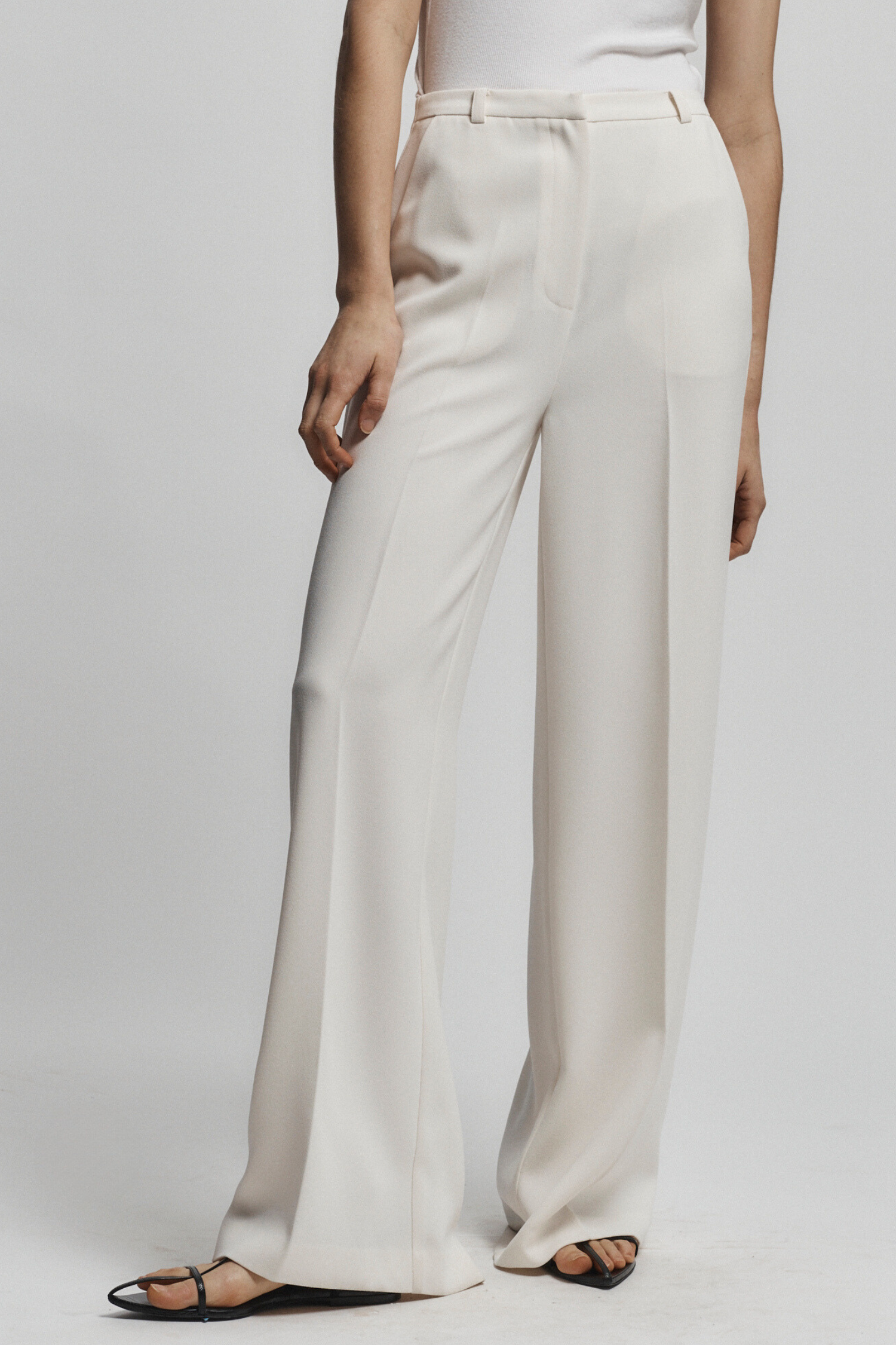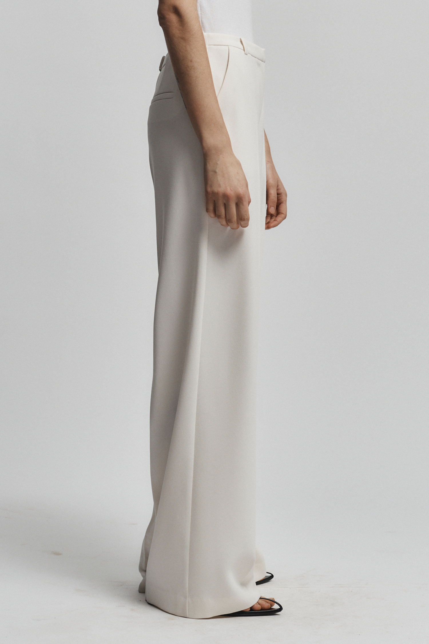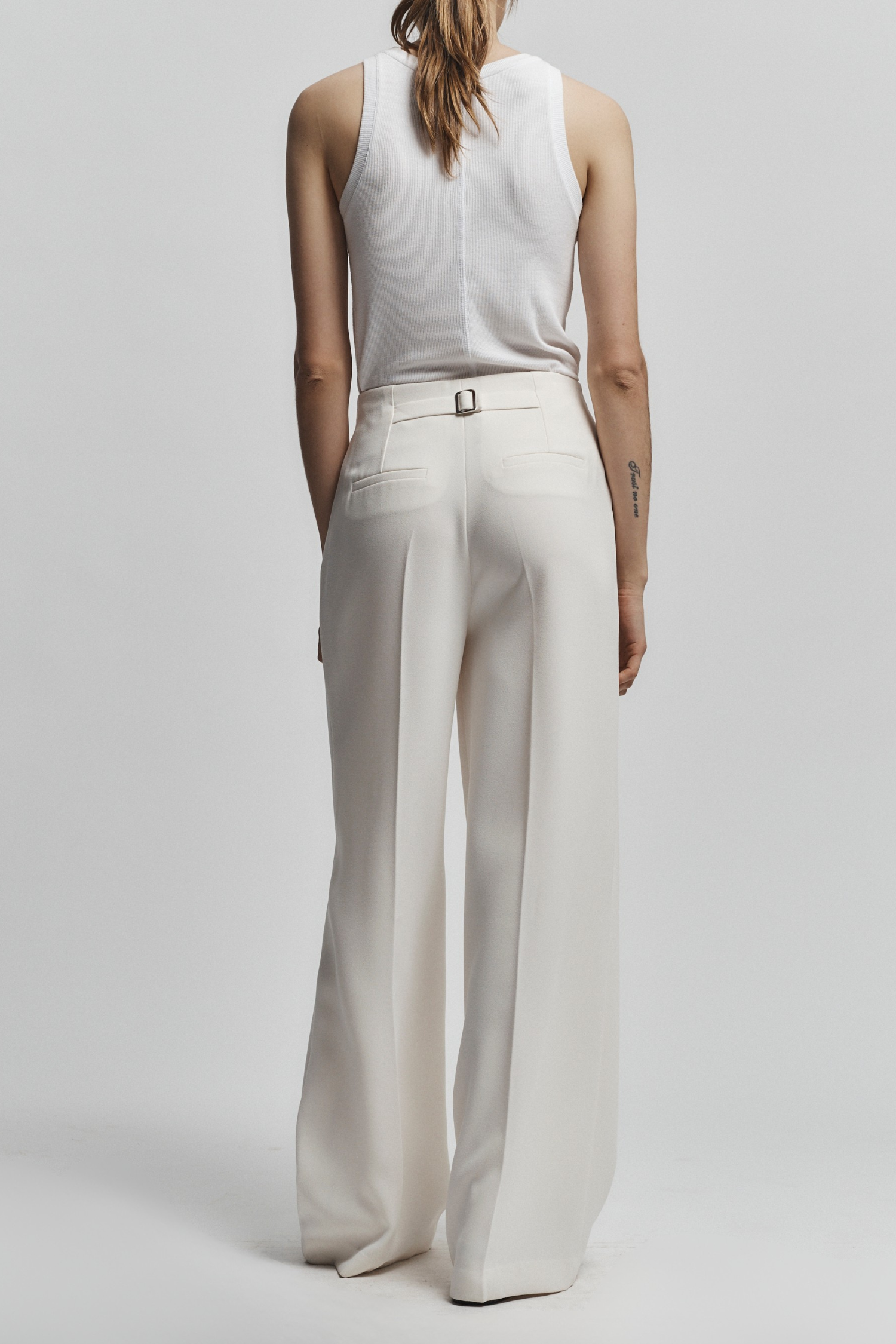 Introducing the Rhodes Wideleg Pant in ivory crepe. Designed for maximum comfort and style, these wideleg pants feature a back waistband buckle detail for a touch of elegance. Made from high-quality crepe, these pants are a must-have for any wardrobe. Elevate your look with these versatile and chic pants.