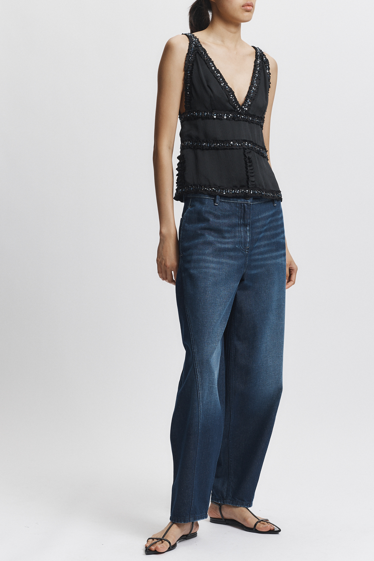 Indulge in luxury with our Maisy Embellished Silk Top. Crafted with luxurious hammered silk, this top features hand beaded embellishments and a flattering v-neck. Elevate any outfit with this beautiful and unique piece.