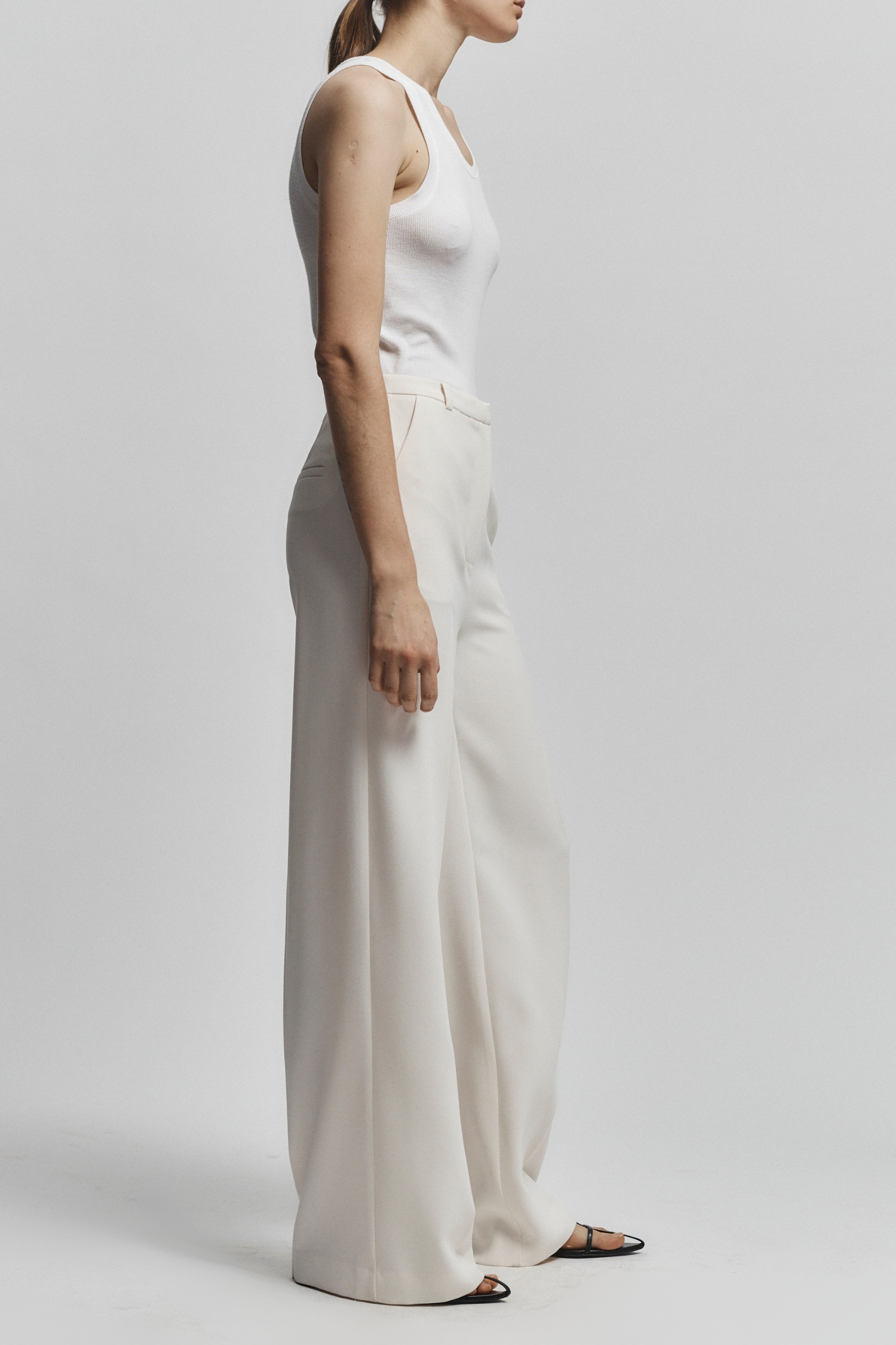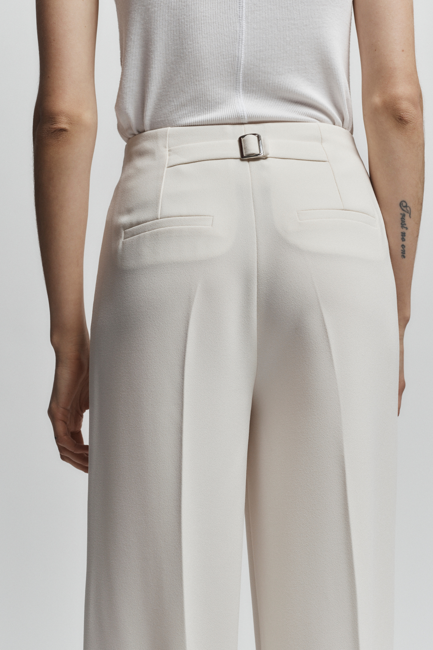 Introducing the Rhodes Wideleg Pant in ivory crepe. Designed for maximum comfort and style, these wideleg pants feature a back waistband buckle detail for a touch of elegance. Made from high-quality crepe, these pants are a must-have for any wardrobe. Elevate your look with these versatile and chic pants.