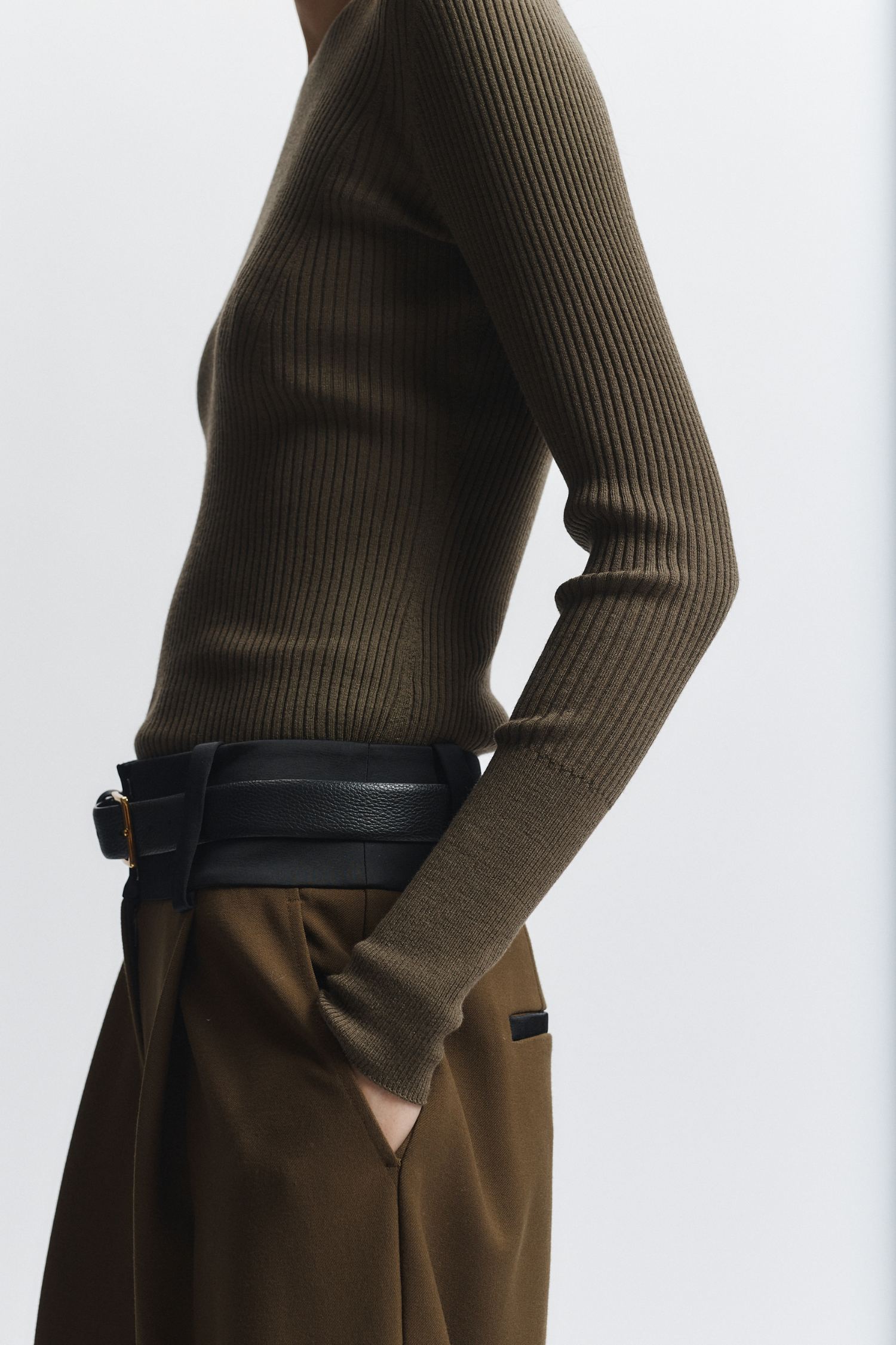Crafted from premium fine gauge merino wool, the Atlas Rib Crewneck Sweater in olive offers exceptional warmth and breathability. Its refined ribbed texture adds subtle depth, making it a versatile layering piece. Pair it effortlessly with the Stone Suiting Trouser for a polished, sophisticated look that balances comfort with tailored elegance. Ideal for those seeking expert-level style and functionality in their wardrobe.