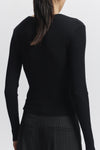 The Braylon Rib Cardigan Sweater in black is expertly crafted from soft, breathable merino wool with a durable ribbed texture for a polished look. Its tailored fit makes it an ideal layering piece, perfectly complementing the Tiffany mid-waisted wide-leg trousers for a sophisticated, contemporary ensemble.