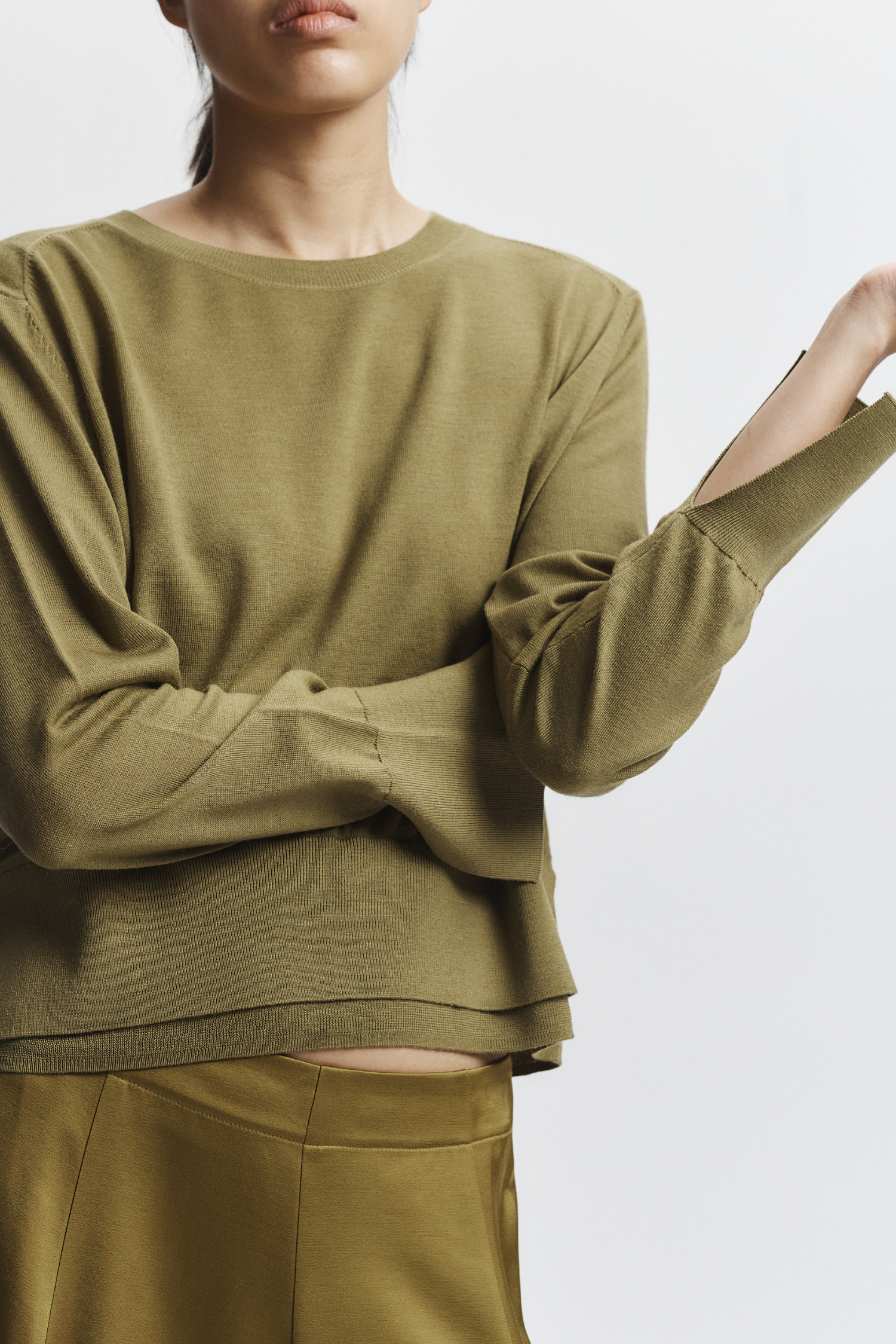 Crafted from premium merino wool, the Elodie Layered Crewneck Knit in vibrant chartreuse offers exceptional warmth and breathability. Its layered design adds subtle texture and depth, making it a sophisticated choice for cooler days. Pair it effortlessly with the Landon panel skirt in moss for a refined, nature-inspired ensemble that balances comfort with expert style.