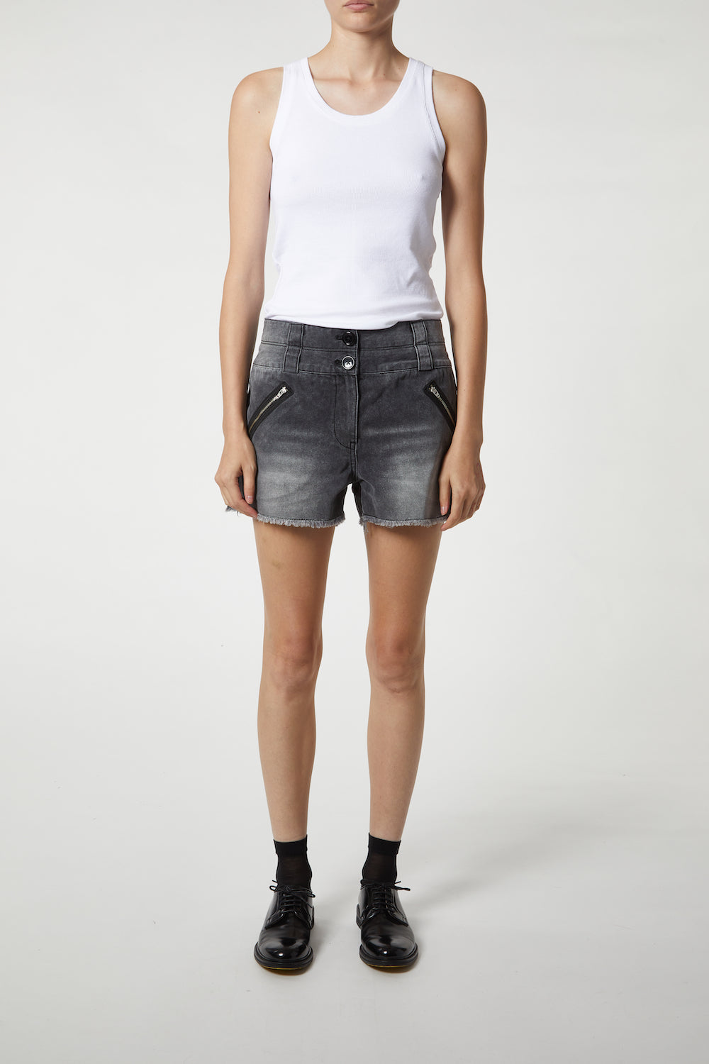 Introducing the Grayson Moto Short – a contemporary take on classic style effortlessly blending everyday ease and rock and roll style. Elevate your wardrobe with these denim shorts featuring a unique double waistband that adds a touch of modern flair. The zip-front pockets ensure a sleek and polished look, while the faded black wash adds a hint of edgy sophistication. Crafted from high-quality cotton-tencel, these shorts offer both durability and flexibility, making them perfect for versatile styling. Whether you're dressing up for a night out or opting for a casual vibe, the Grayson Moto Short is your go-to choice for a trendy and comfortable look.