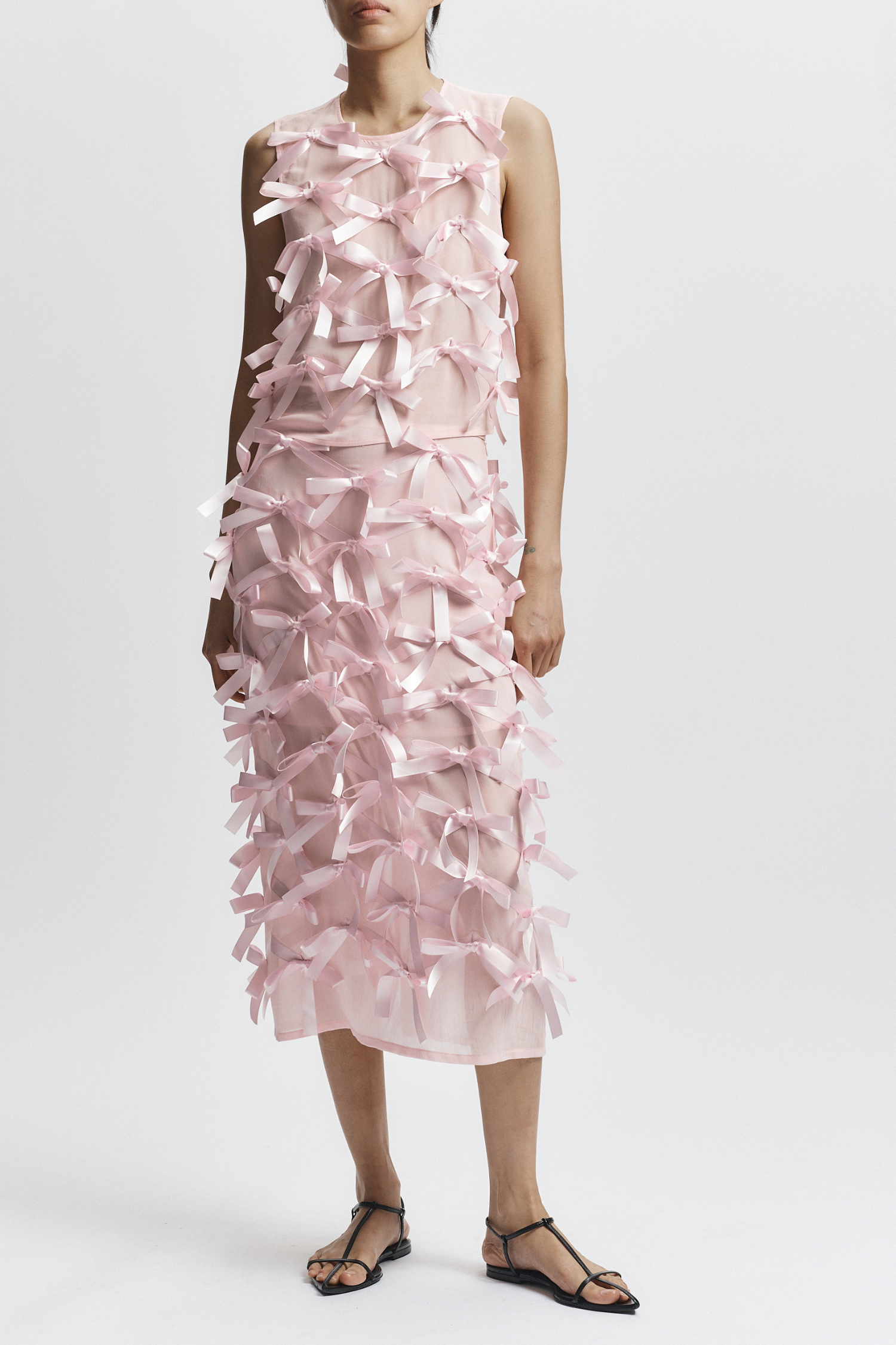 The Gwen Bow Skirt in Barely Pink showcases a soft light pink shade accented with elegant bow details, offering a sophisticated and feminine silhouette. Designed to pair seamlessly with the Harlee Bow Blouse, this skirt provides a cohesive and polished look ideal for refined styling. Its delicate color and thoughtful design make it a versatile piece for elevating your wardrobe with subtle charm.