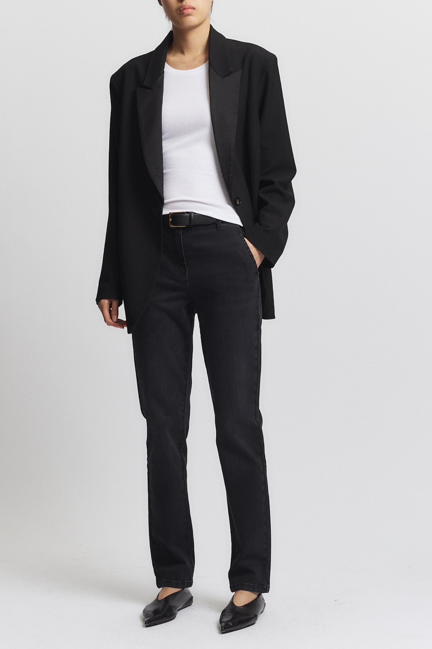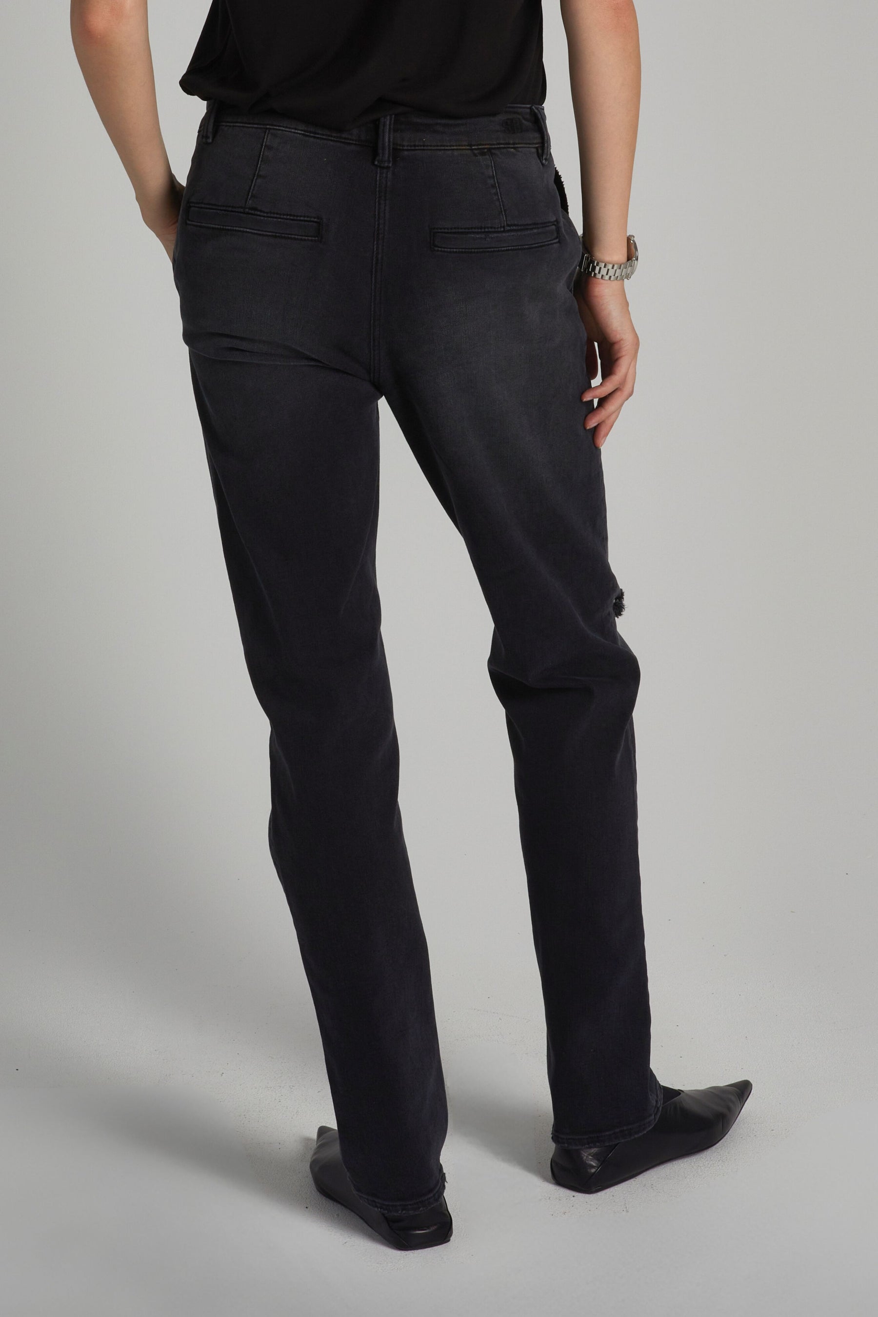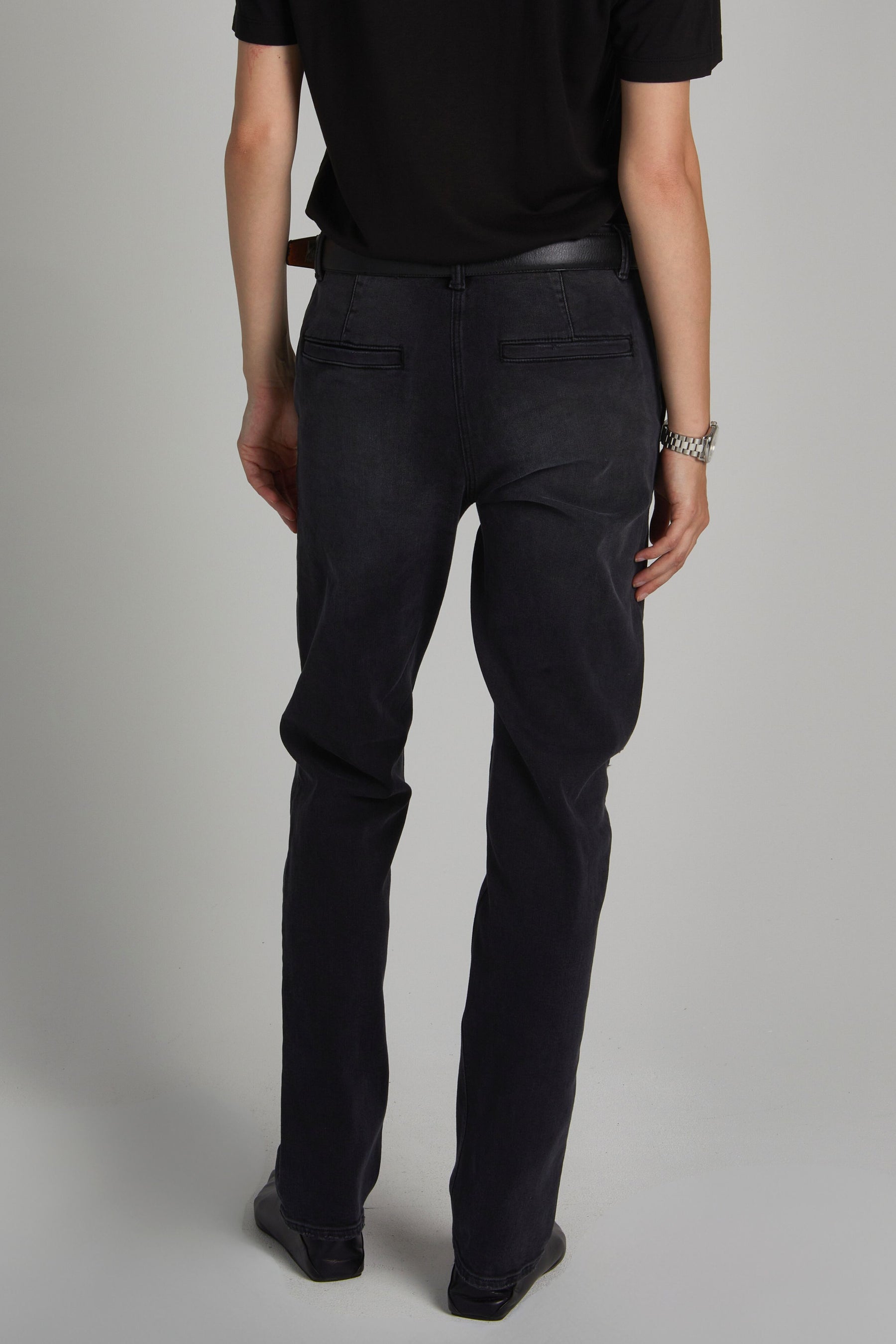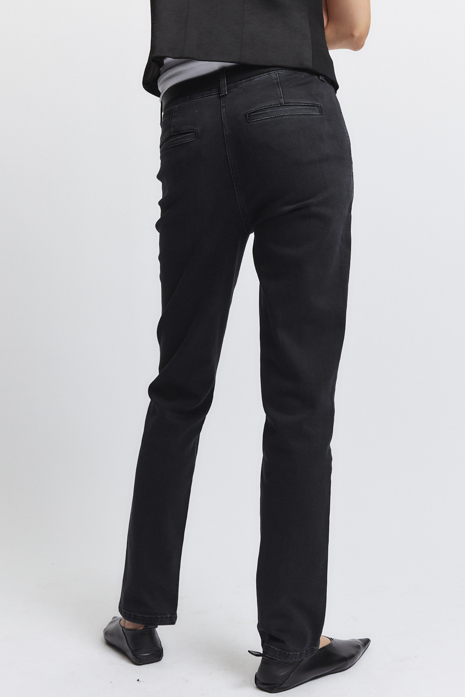 The Kiana Denim Pant is a modern twist on a classic straight leg jean. With welted trouser pockets at the back and a washed black color, it offers a unique and stylish look. The mid-rise waist is flattering and the stretch denim provides comfort and ease of movement. Say goodbye to traditional five pocket jeans and hello to a new level of style and comfort.