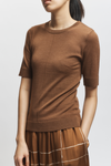 Crafted from 100% merino wool, the Lucia Short Sleeve Sweater in Clove offers exceptional softness and natural breathability. Its elbow-length sleeves provide a refined silhouette, perfect for layering or wearing alone. Pair it with the Halsey pull-on pant in Ginger for a sophisticated, coordinated look that balances comfort with expert style.