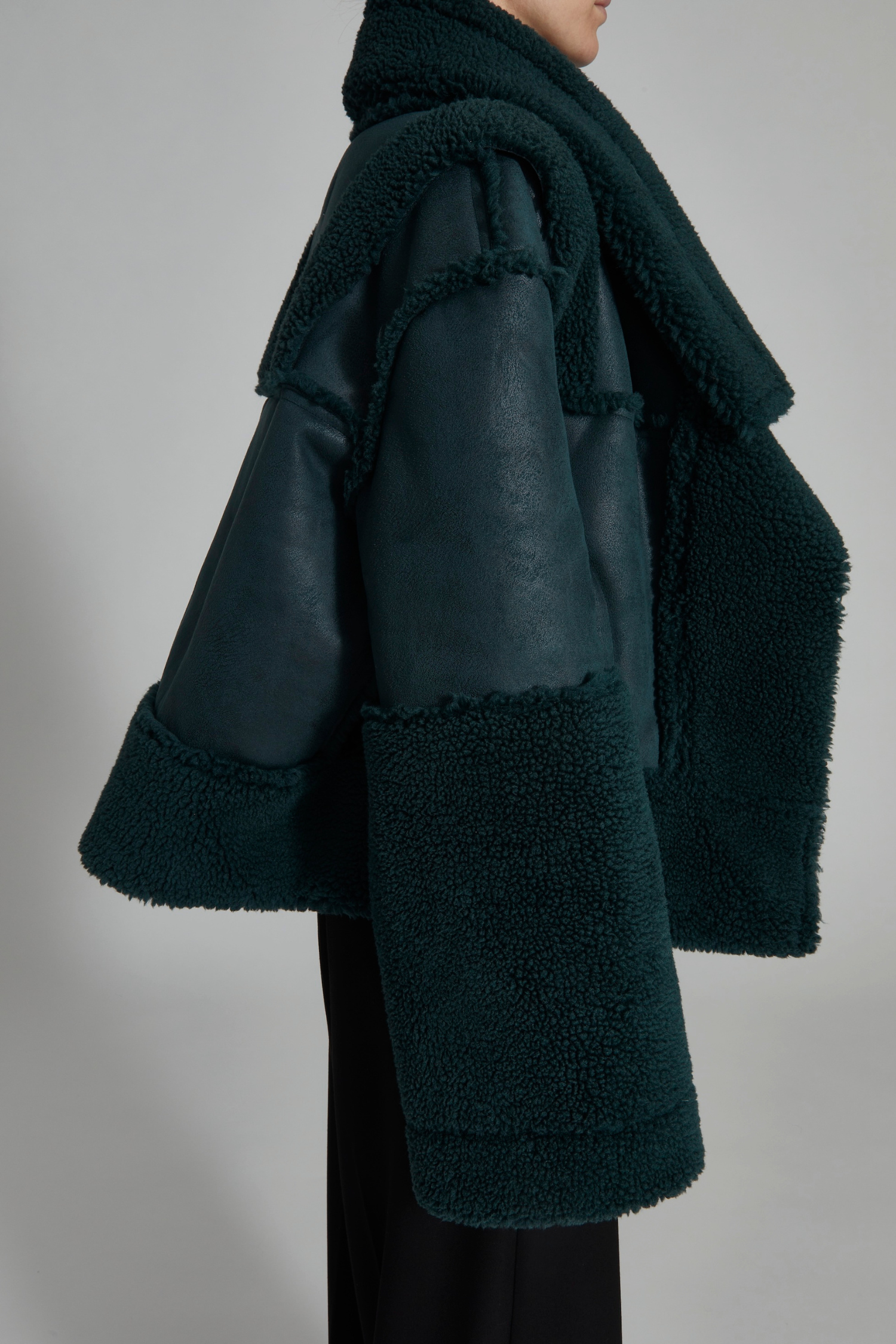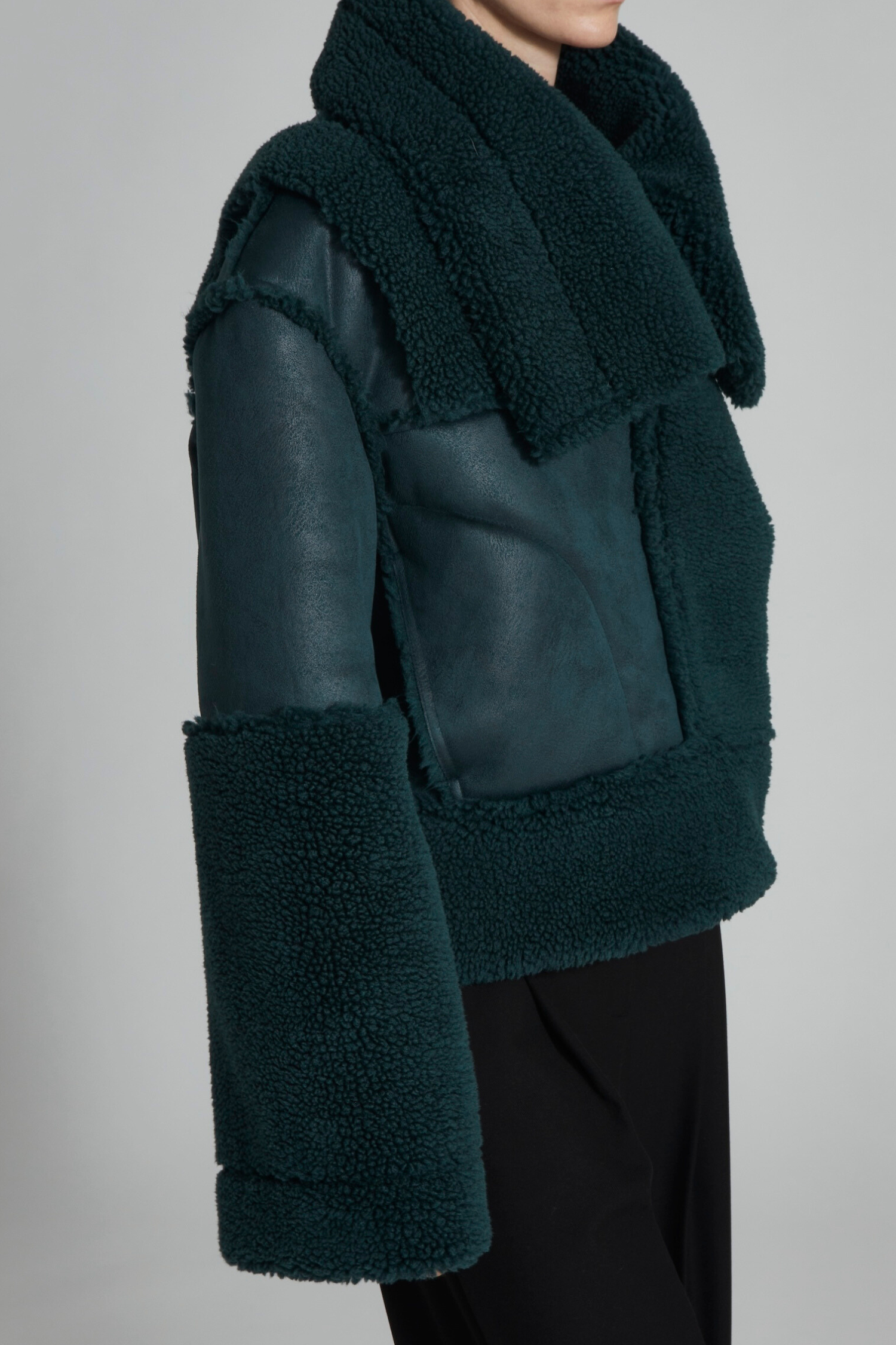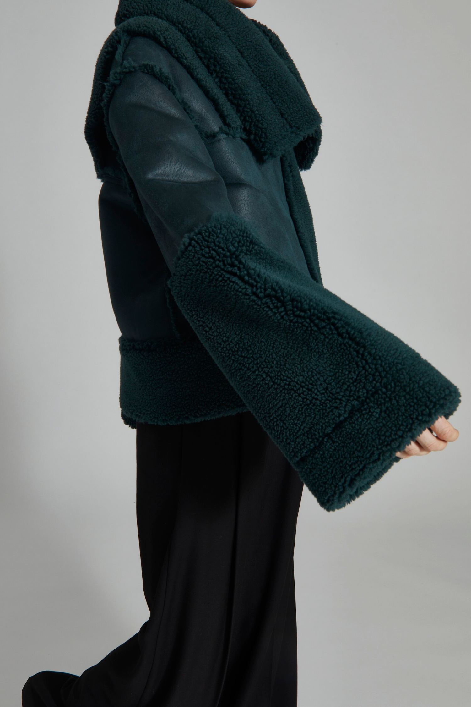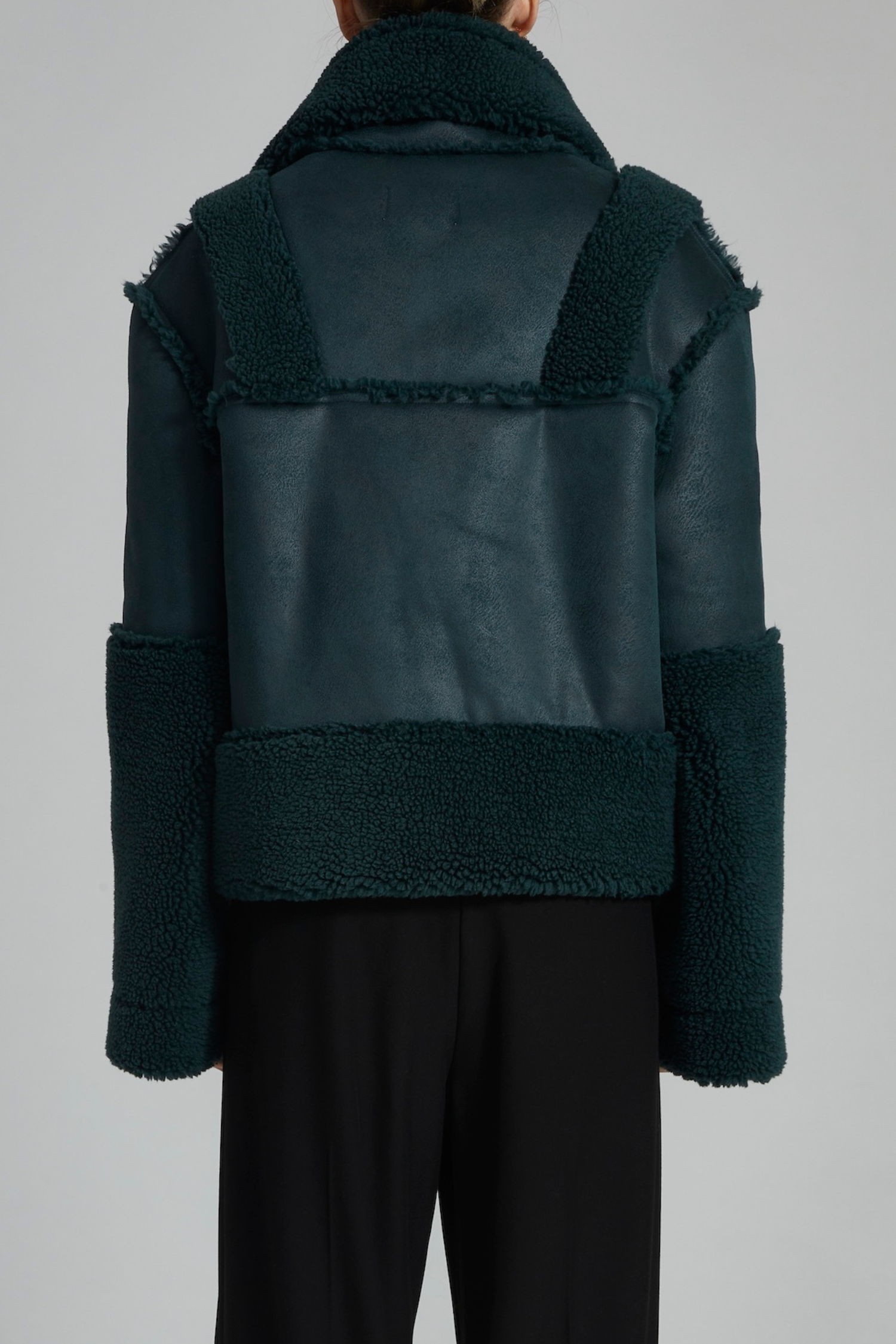 The shearling interior lining adds an extra layer of comfort and insulation, making this jacket your ultimate choice for staying snug while maintaining a trendy appearance.