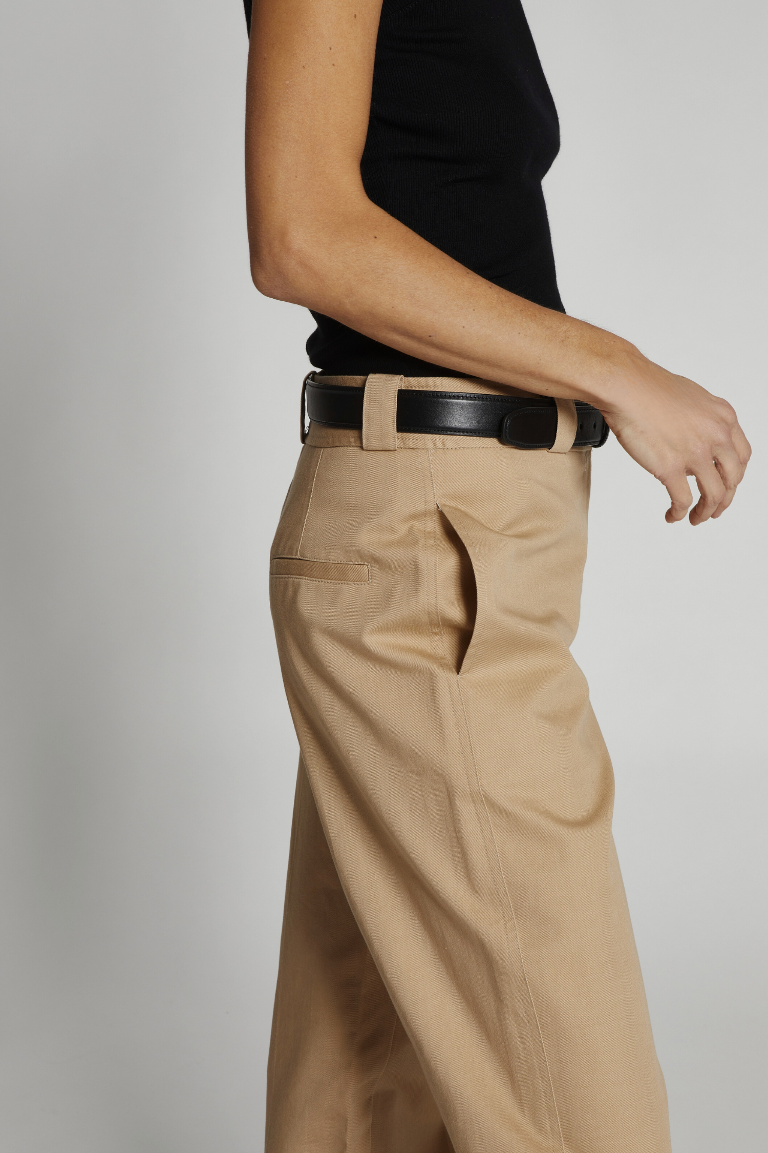 Elevate your everyday style with the Nessa Khaki Pant, the epitome of comfort and sophistication. Designed with a low to mid rise for a flattering fit, these pants boast an ultra-soft feel that ensures all-day comfort. The sleek hook and bar closure adds a touch of refinement, while the raw hem brings a modern edge to the classic khaki design. Signature wide belt loops allow for effortless accessorizing, making these pants a versatile addition to any wardrobe. Whether you're dressing them up with a blouse or keeping it casual with a tee, the Nessa Khaki Pant is the perfect foundation for creating an effortless looks for any occasion.