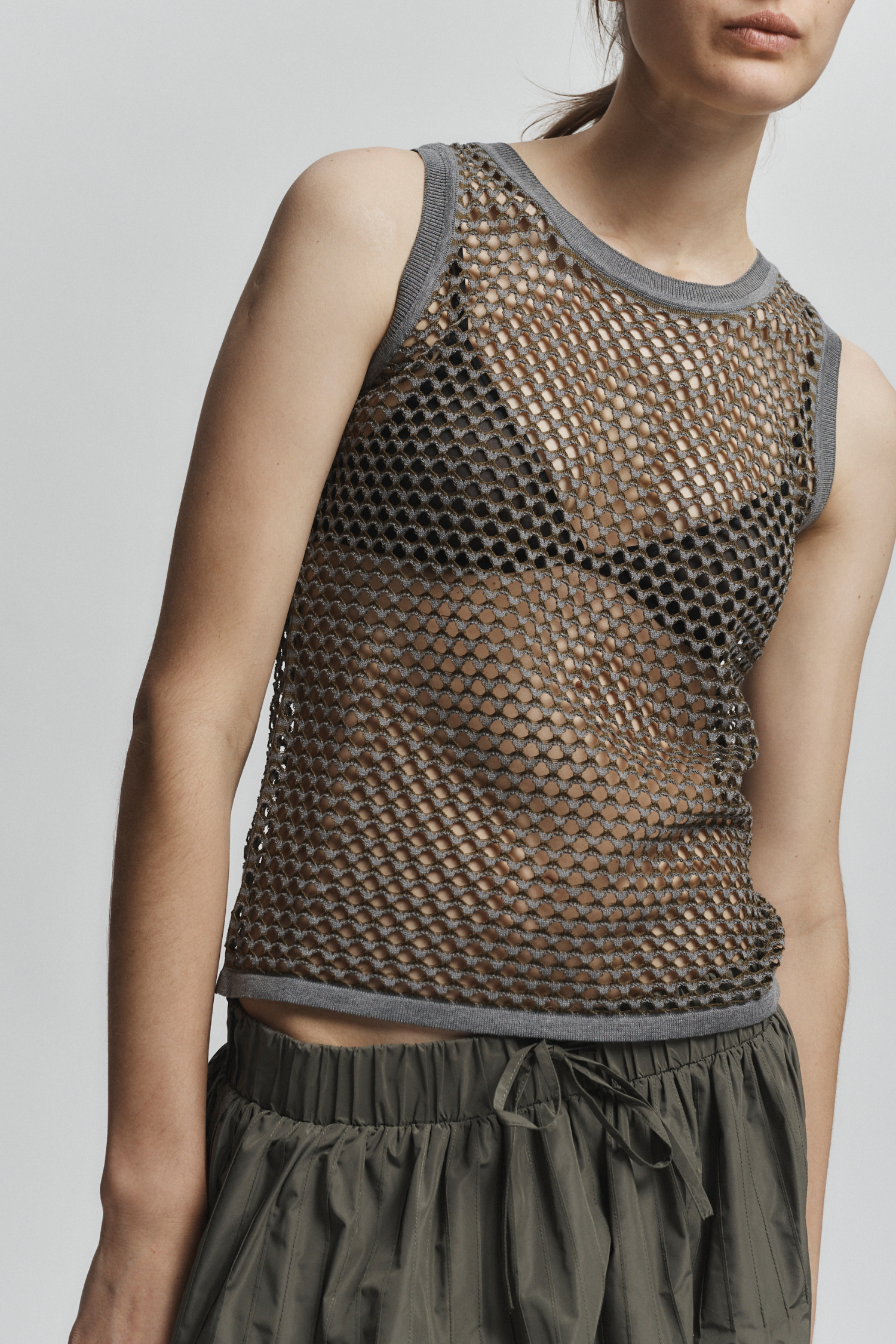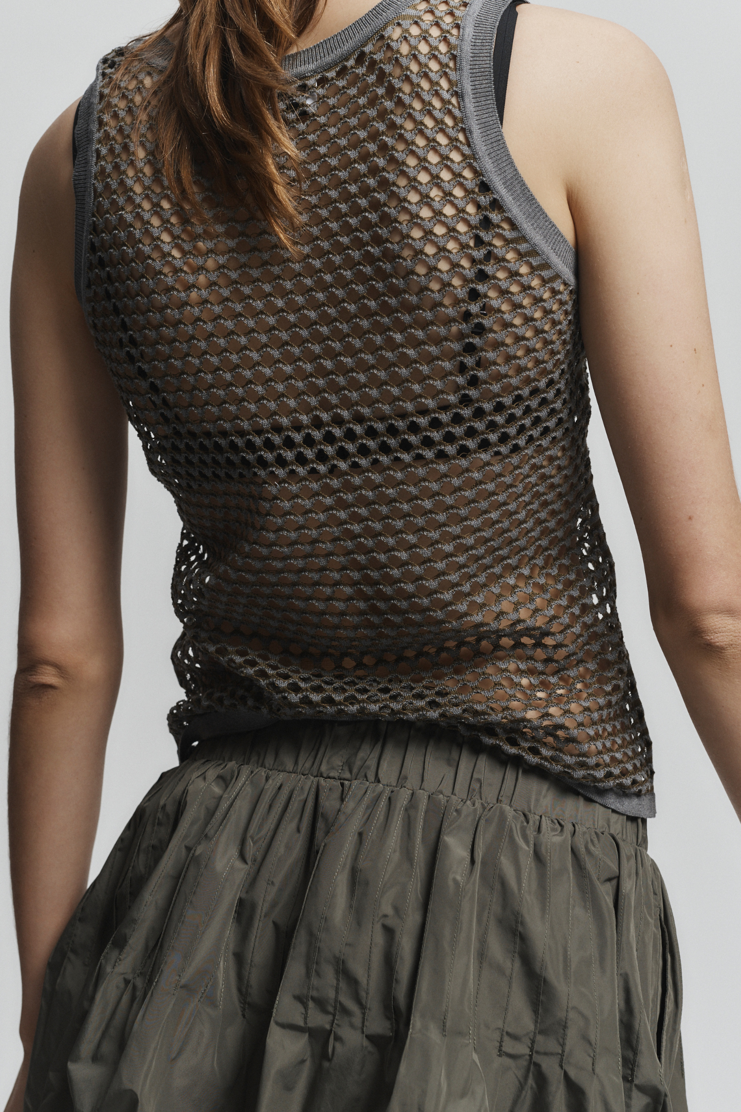 Expertly crafted with mercerized cotton yarns, the Perla Open Weave Tank offers a breathable and lightweight option for your wardrobe. Its unique open weave construction allows for pairing with a bra or layering with a tank for versatile coverage. Complete the look with the Katie skirt in olive for a stylish ensemble.