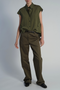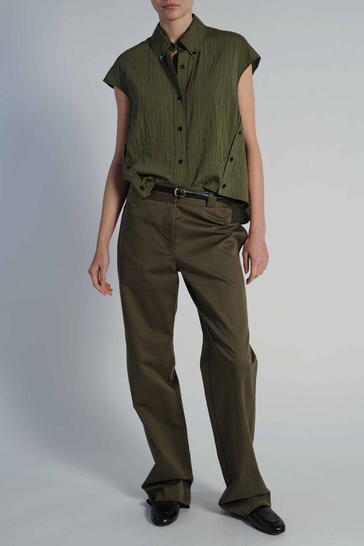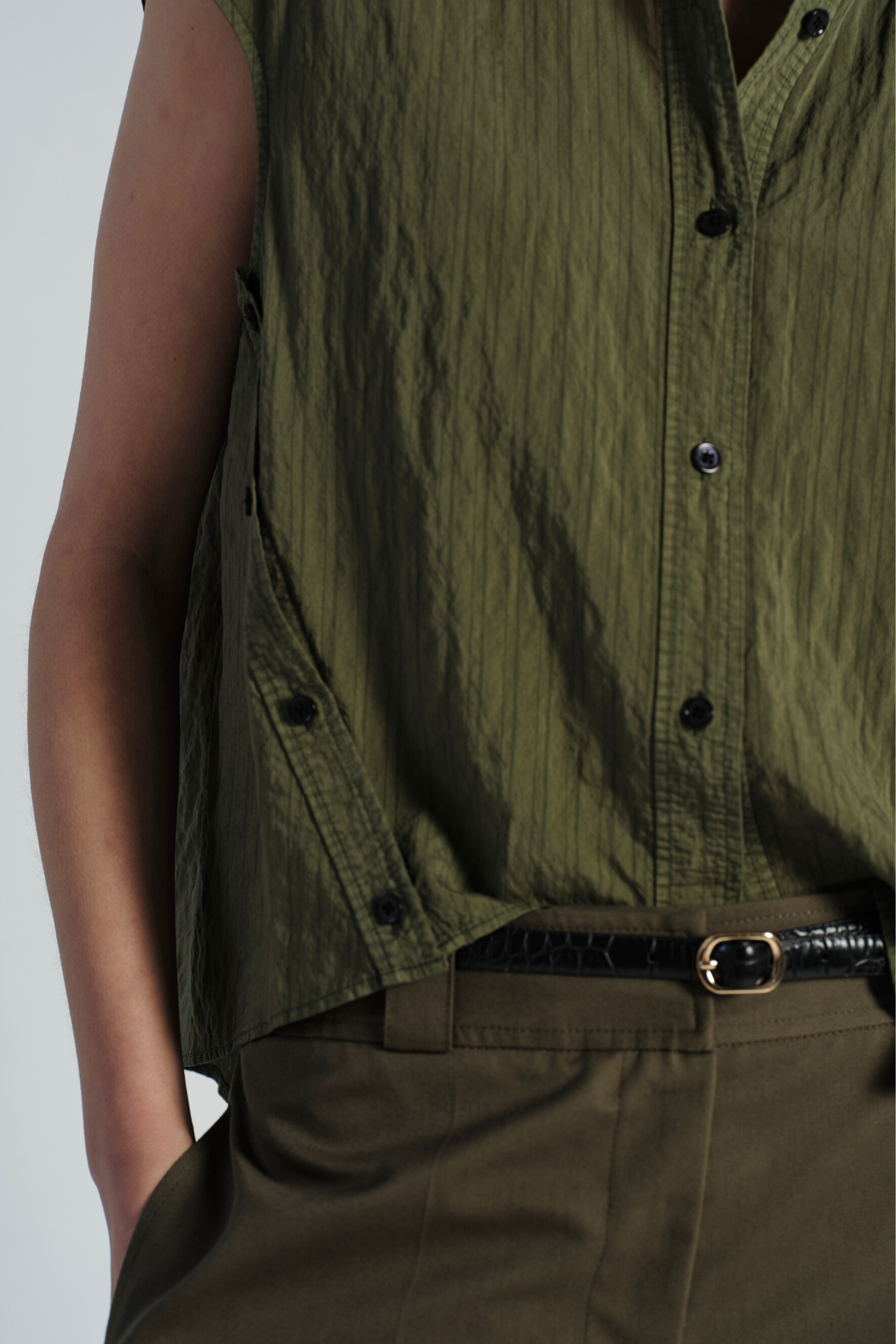 Perth Cap Sleeve Button Blouse, Olive Pinstripe